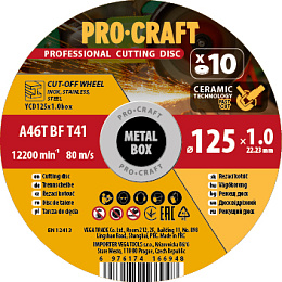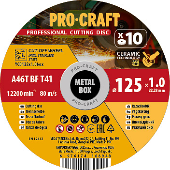 Sada řezných kotoučů Procraft YСD125x1.0b Průměr kotouče: 125 mm, Průměr otvoru: 22,23 mm, Tloušťka 1,0 mm, Balení 10ks.