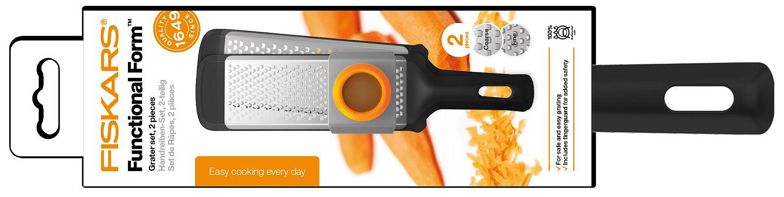Hrubé struhadlo ideální pro strouhání zeleniny, ovoce a sýrů.