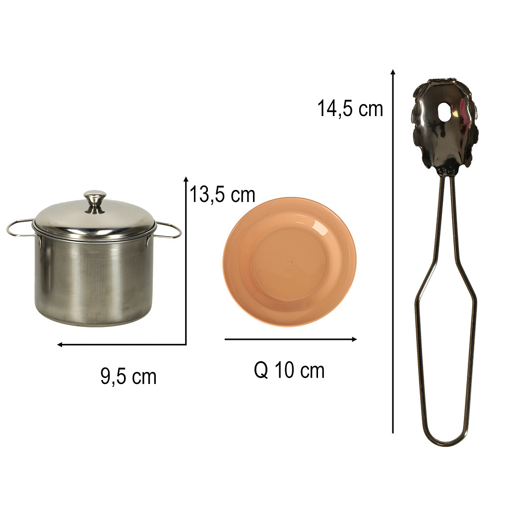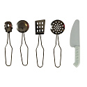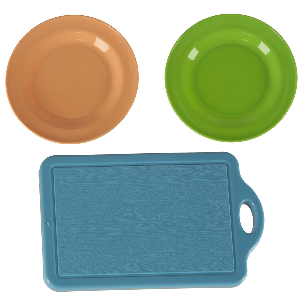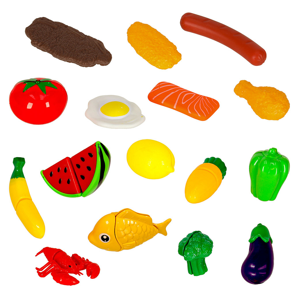 Různorodá zelenina, ovoce a jiné potraviny se rozdělují na menší části, což umožňuje dítěti procvičovat své manuální dovednosti tím, že „krájí“ produkty pomocí plastového nože. V sadě se nacházejí také talíře, cedník a další kuchyňské doplňky, které dodávají hře na realističnosti.