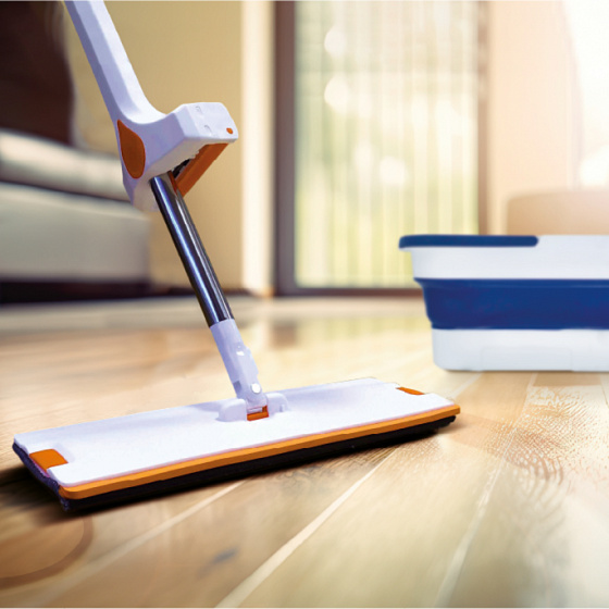 Contents: 1 Express Self-Cleaning Broom + 1 Folding Bucket + 2 Microfiber Cloths