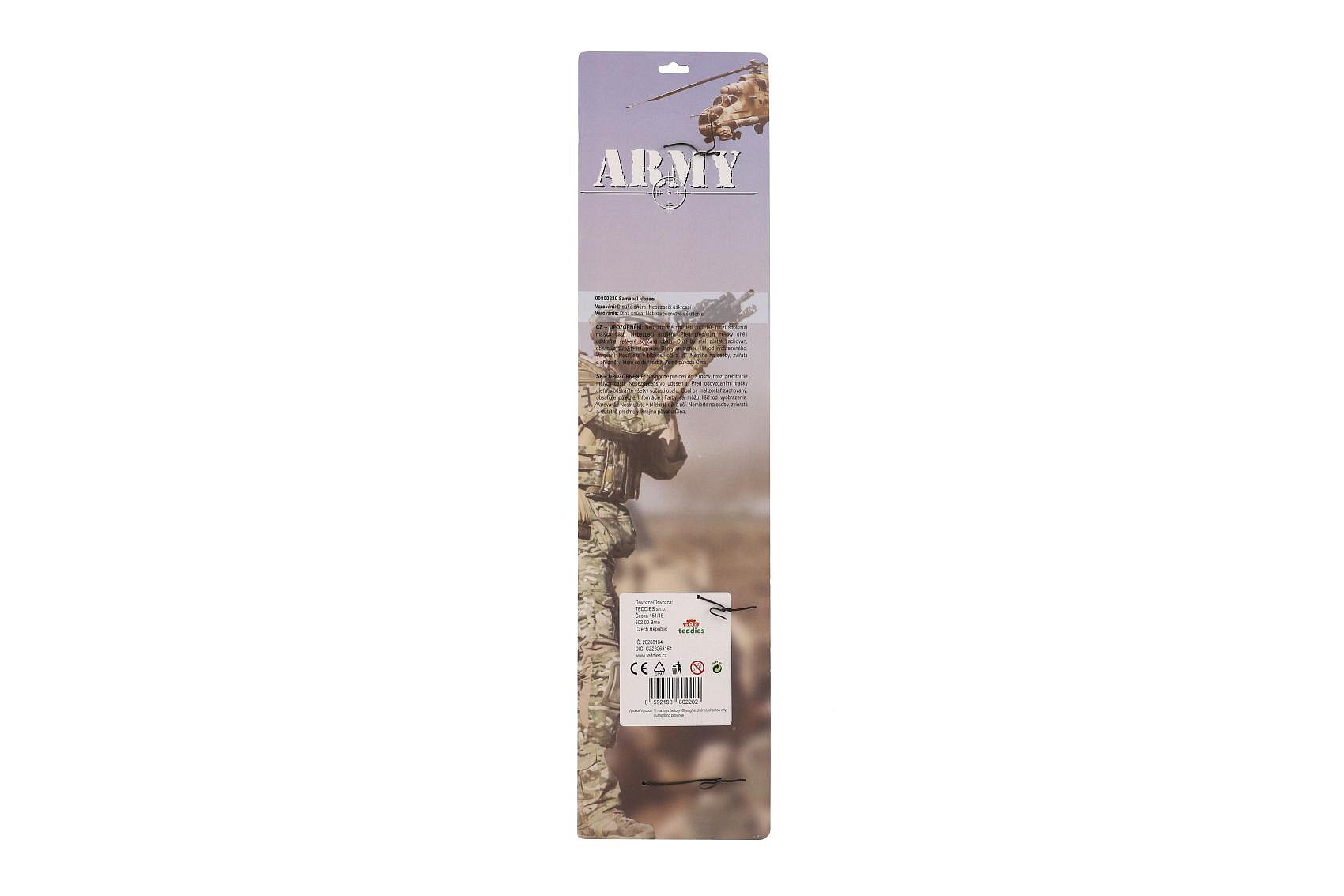 Čeká tě náročná mise! Máš za úkol ochránit tábor před nepřátelským vojskem! Vydej se na průzkum terénu a dohlédni na to, aby tábor byl v bezpečí! Parádní samopal je s popruhem a žádný nepřítel proti tobě nemá šanci! Rozměry balení 18,5 x 76 x 5 cm. Vhodné pro děti od 3 let.