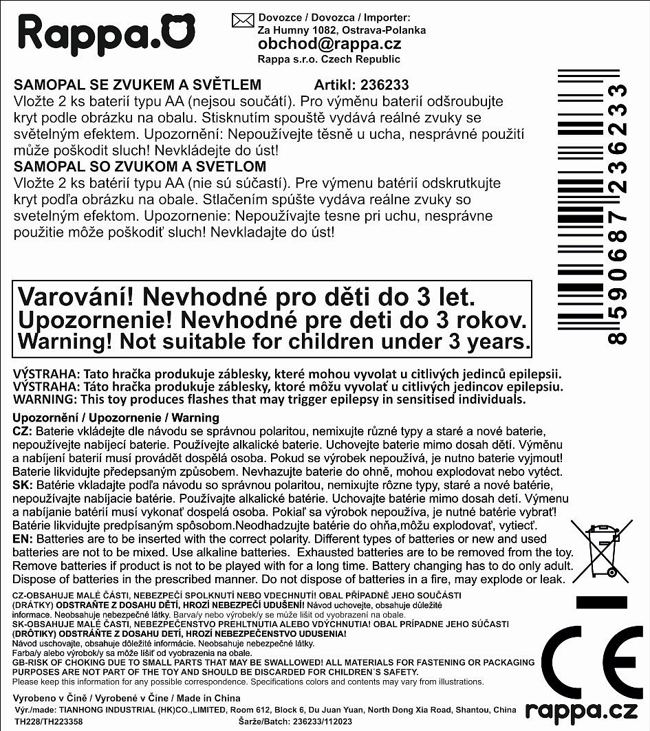 Famózní policejní samopal s reálnými zvuky a světelným efektem! Do samopalu je potřeba vložit 2 ks b