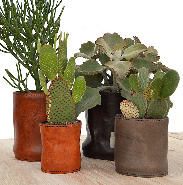 Scotts Bluf Lederen bloempot is een bloempot van Italiaans leder.
