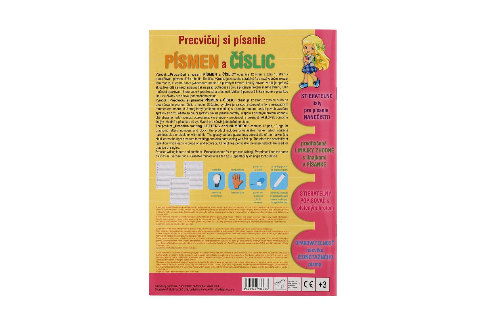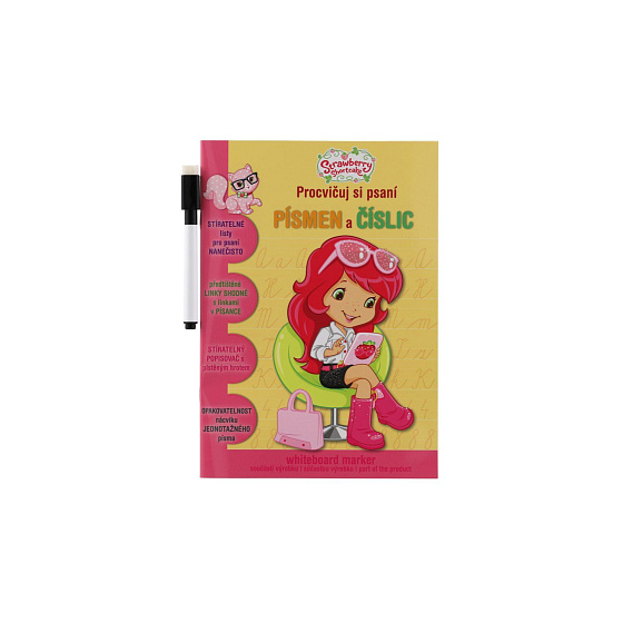 Sešit aktivit Procvičuj si písmena a číslice Jahůdka + stíratelný popisovač v sáčku 16,5x24x2cm