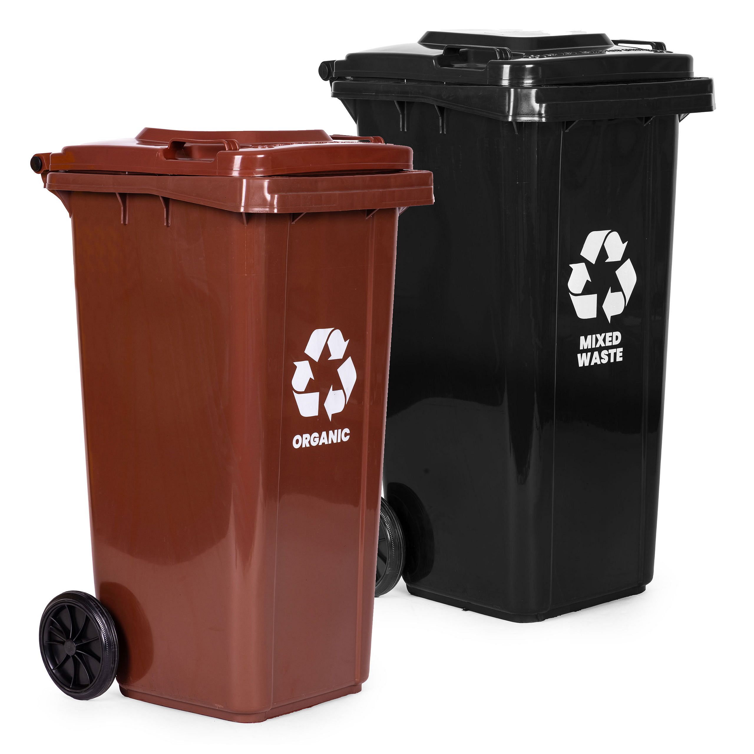 Made of high-quality HDPE plastic, they are resistant to UV radiation, chemicals and mechanical damage, ensuring long-lasting durability. The tight lid prevents water from entering and keeps unpleasant odors inside. Solid wheels and ergonomic handles make moving the bins extremely easy even when fully loaded. The bins meet standards that allow them to be serviced by municipal waste companies, guaranteeing versatility and enabling waste unloading by garbage trucks. The 2x120L capacity makes them ideal for households, businesses and service facilities, ensuring cleanliness and convenient waste sorting.