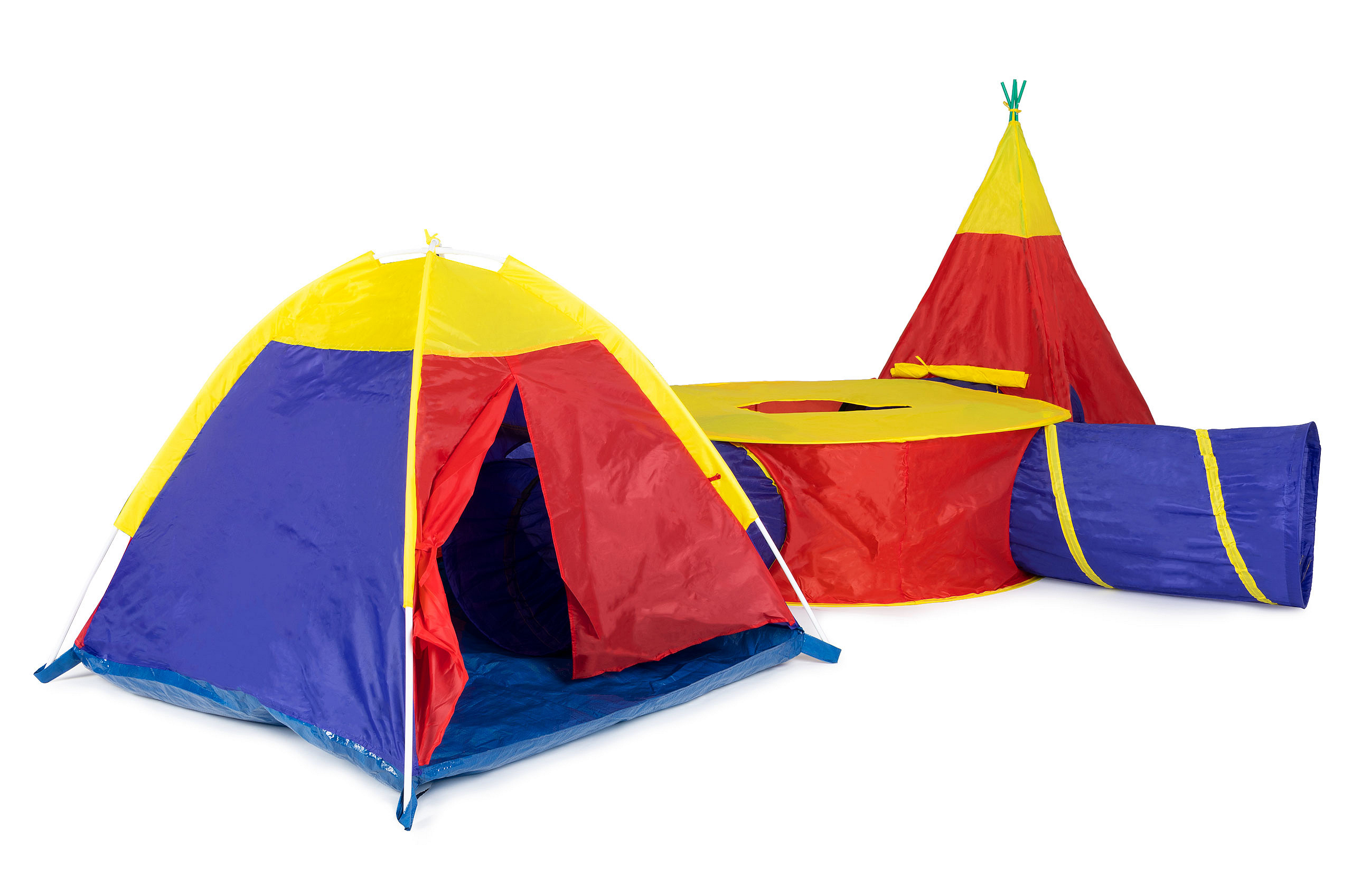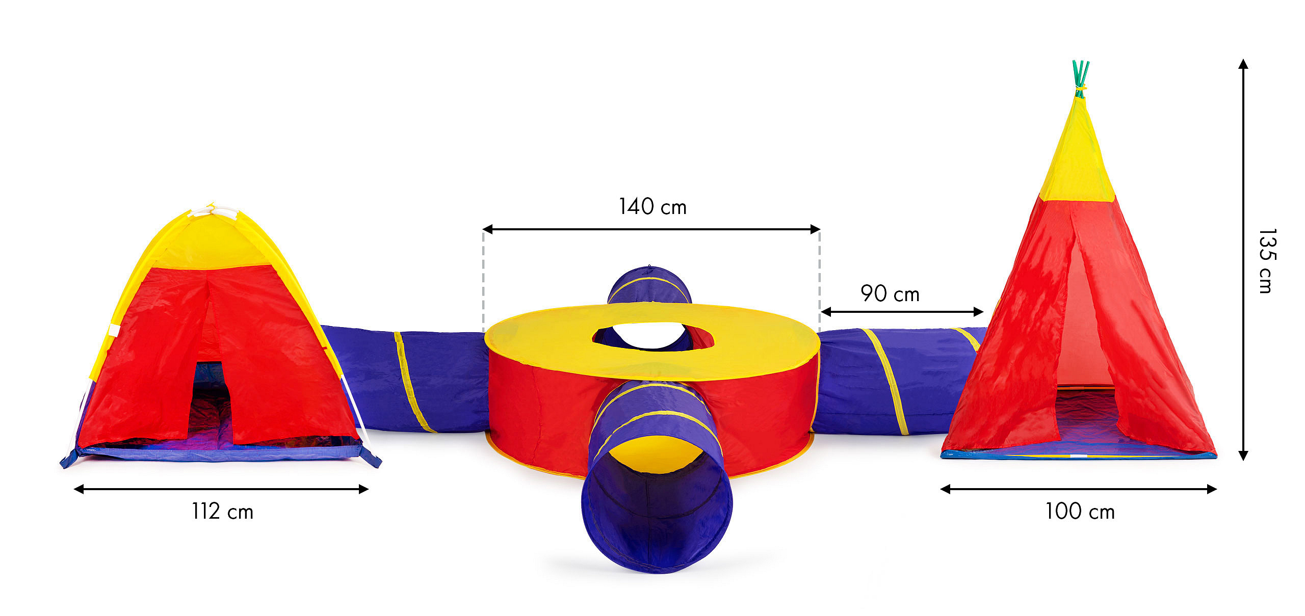 A set of 7 different tents combined into one large playground is a perfect way to have fun outdoors. Thanks to the universal design, the possibility of configuring and combining elements is unlimited . Each part of the playground can be used separately, so it is perfect for both home and garden. This is great fun even for several children, it is perfect for birthdays when children can play together.