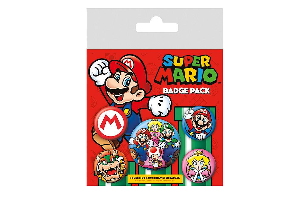 Originální odznaky na batoh Super Mario Set obsahuje odznak 38 mm + 4 odznaky 25 mm.