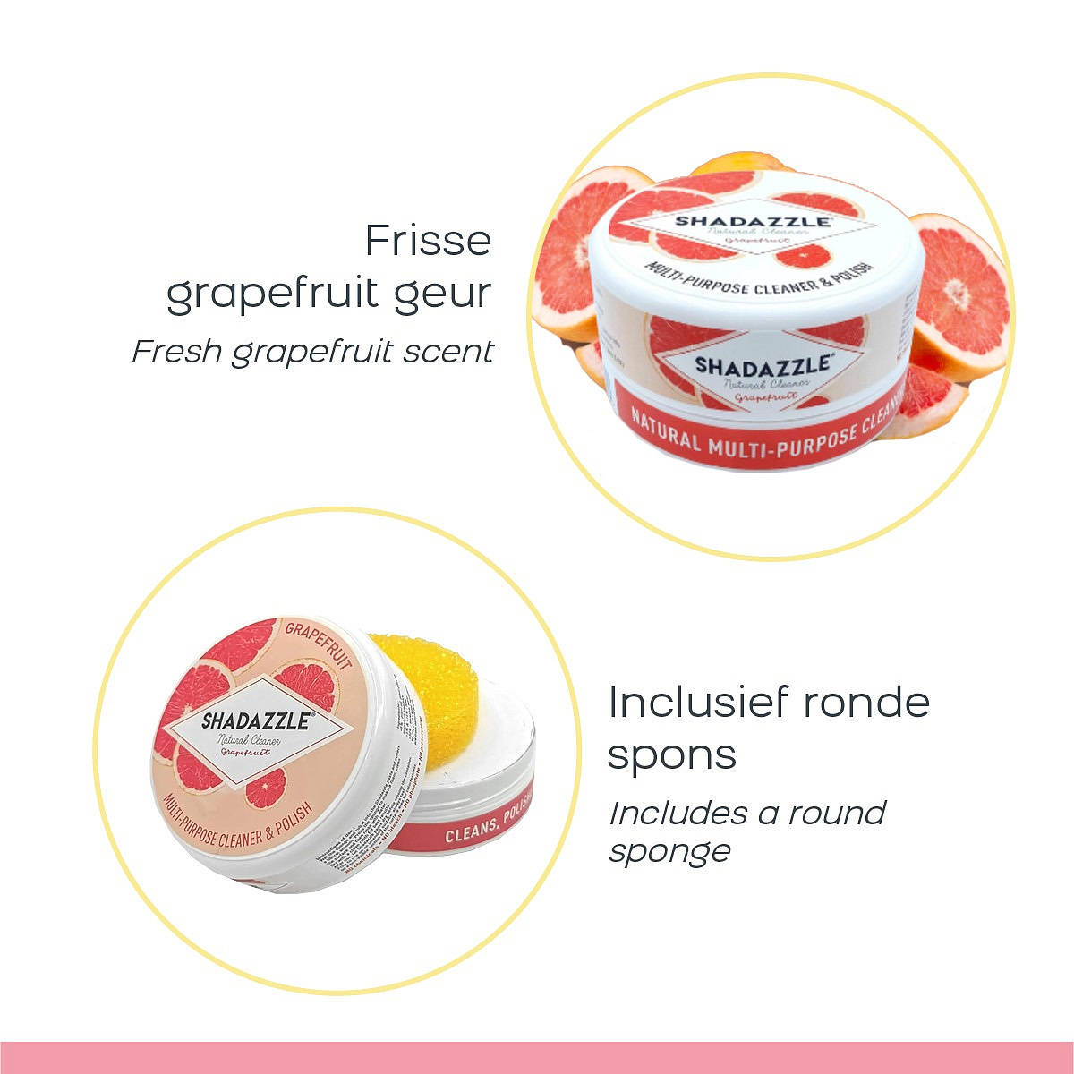 With Shadazzle Grapefruit, your home will shine like new! This versatile cleaning product not only cleans thoroughly, but also leaves a beautiful shine and a protective layer, helping to prevent dirt from sticking. It’s suitable for almost any surface, both indoors and outdoors. Shadazzle is a true must-have for a fresh and well-kept home.