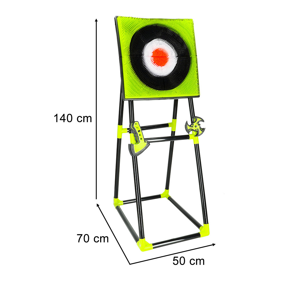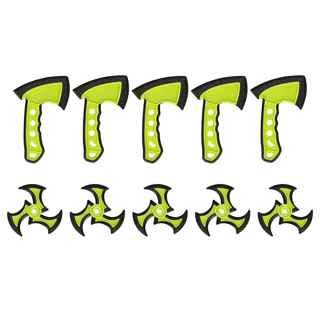 Plastikowe toporki i shuriken’y są obtoczone miękkim silikonem, dzięki czemu rzucanie nimi jest całkowicie bezpieczne. Każdy z akcesoriów jest starannie wykonany, by zapewnić autentyczny wygląd i ekscytującą zabawę. Stabilny, plastikowy stojak z uchwytami umożliwia łatwe przechowywanie akcesoriów i szybkie przygotowanie zestawu do kolejnej sesji treningowej. Dzięki temu Twoje dziecko może doskonalić swoje umiejętności w każdej chwili.