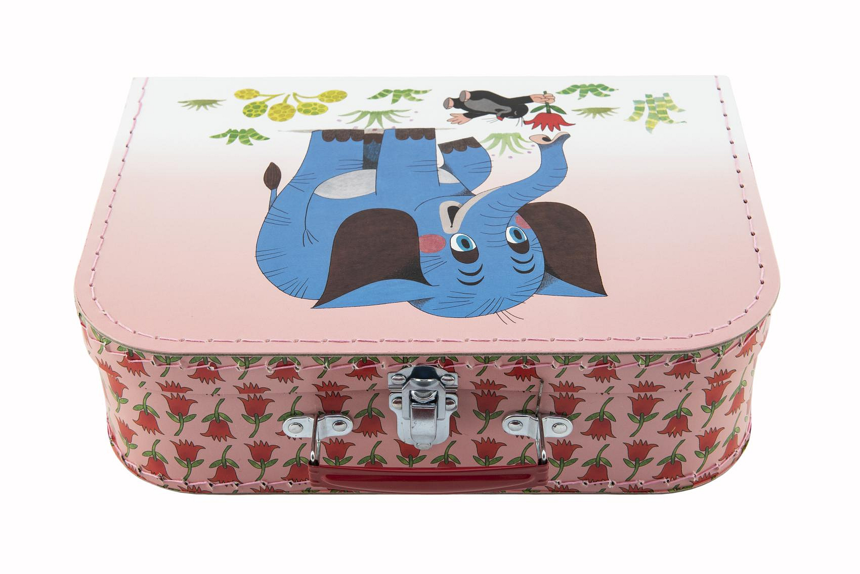 Šitý kufřík s motivem Krtka a slona je vhodný například na uschávání hraček.Velikost 30x21x9,5 cm.