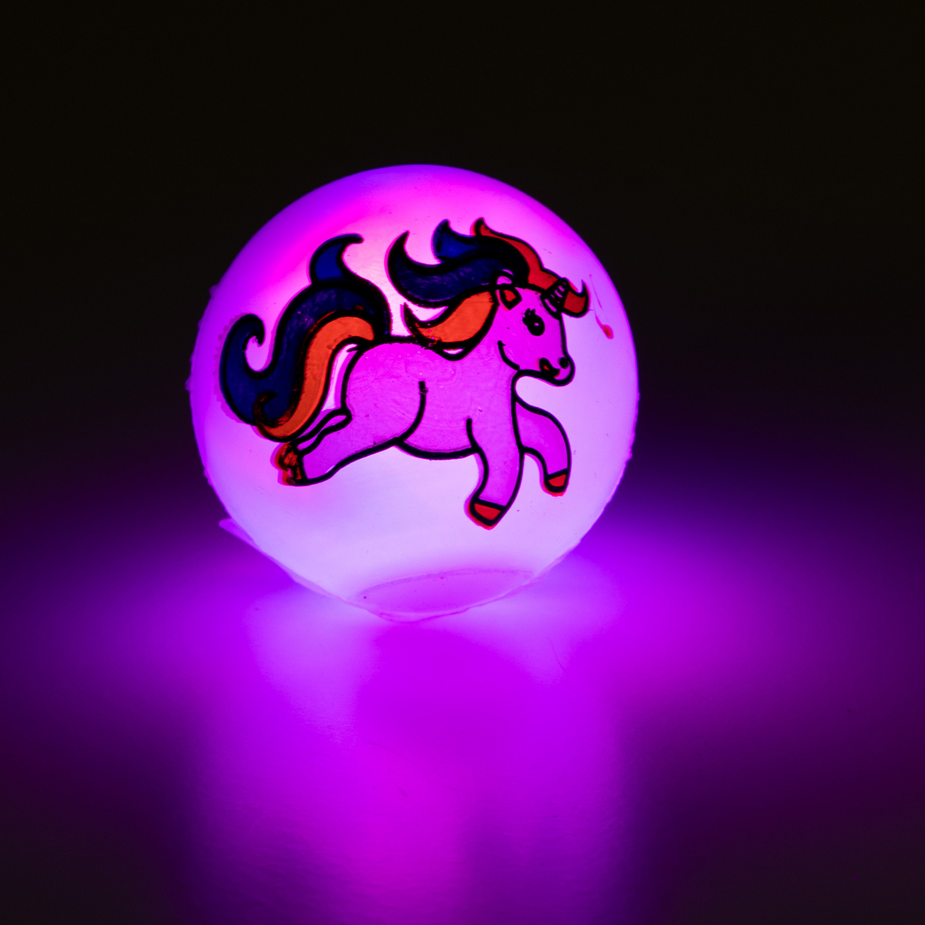 Skákací míček se světlem! Skákací míčky jsou oblíbenou hračkou pro děti i dospělé, ať už pro samotnou hru, nebo zábavu a radost, což může pomoci snížit stres a zlepšit náladu. Tyto veselé kousky v 6 různých barvách a obrázkem jednorožce prodáváme po celém balení 12 ks. Po hození barevně bliká.