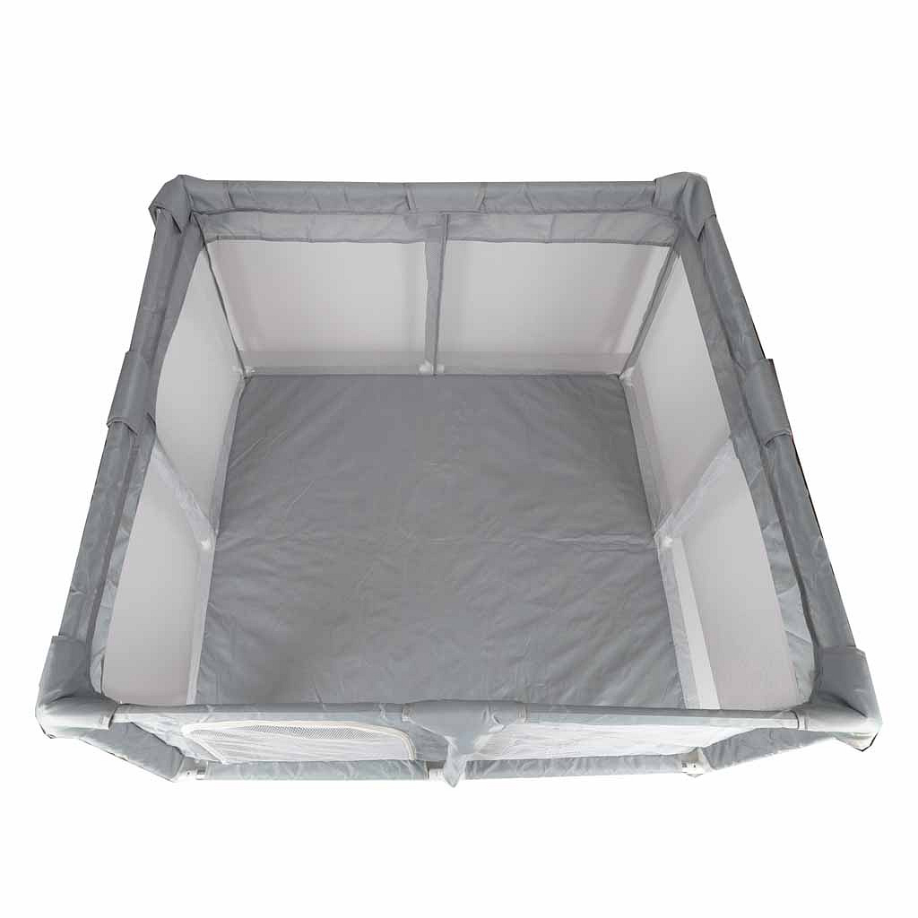 Ścianki z elementami siateczki pozwalają zobaczyć dziecko w kojcu, dzięki czemu można je mieć cały czas na oku. Łączniki z przyssawkami sprawiają, że kojec trzyma się stabilnie i się nie przesuwa podczas użytkowania.