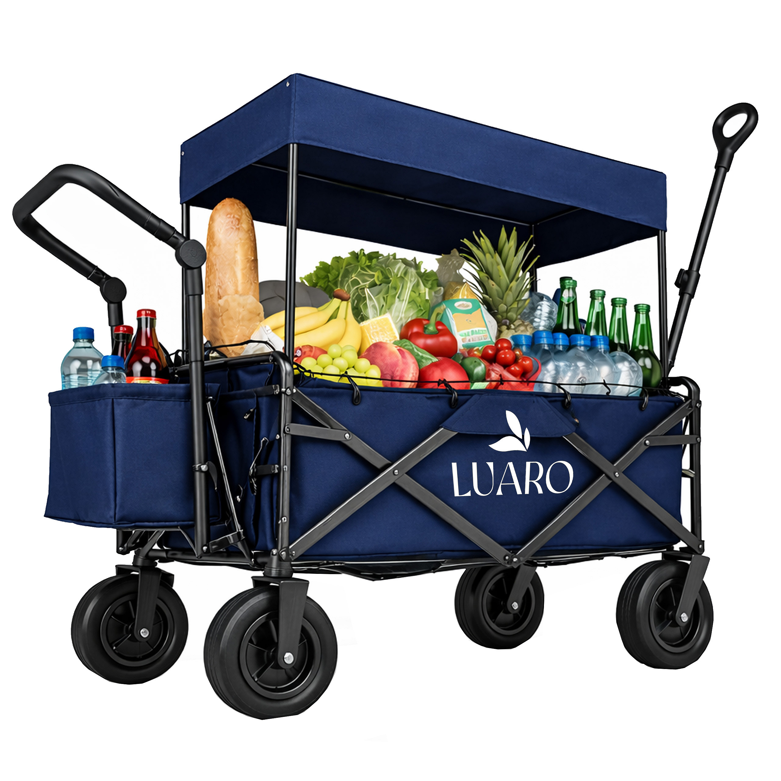 SKŁADANY WÓZEK TURYSTYCZNY Z DASZKIEM LUARO - DUŻY TERENOWY PRAKTYCZNY SPRZĘT TRANSPORTOWY XL NA KAŻDĄ WYPRAWĘ GRANATOWY