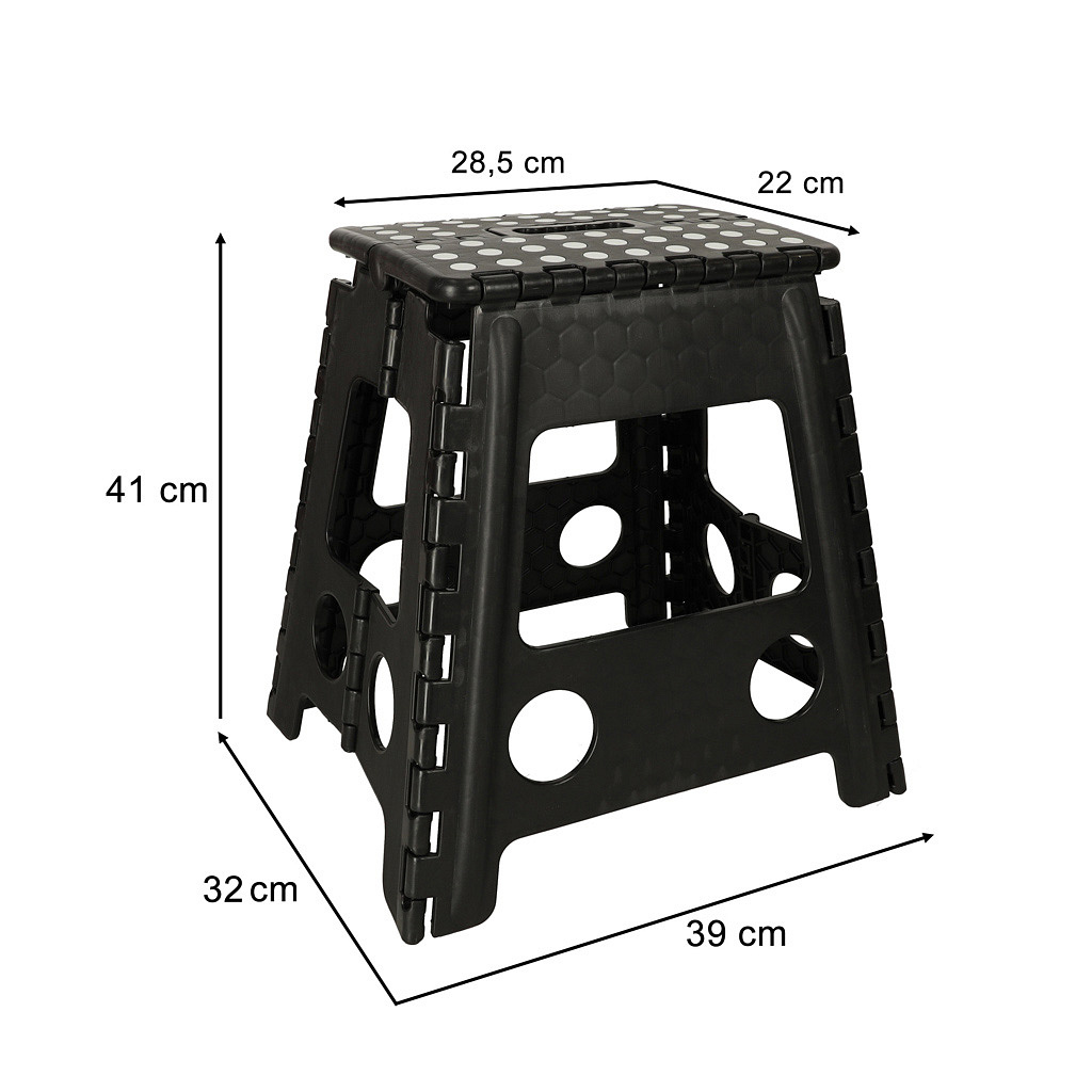 STOŁEK TABORET SKŁADANY ANTYPOŚLIZGOWY WYSOKI 39,5 CM CZARNY