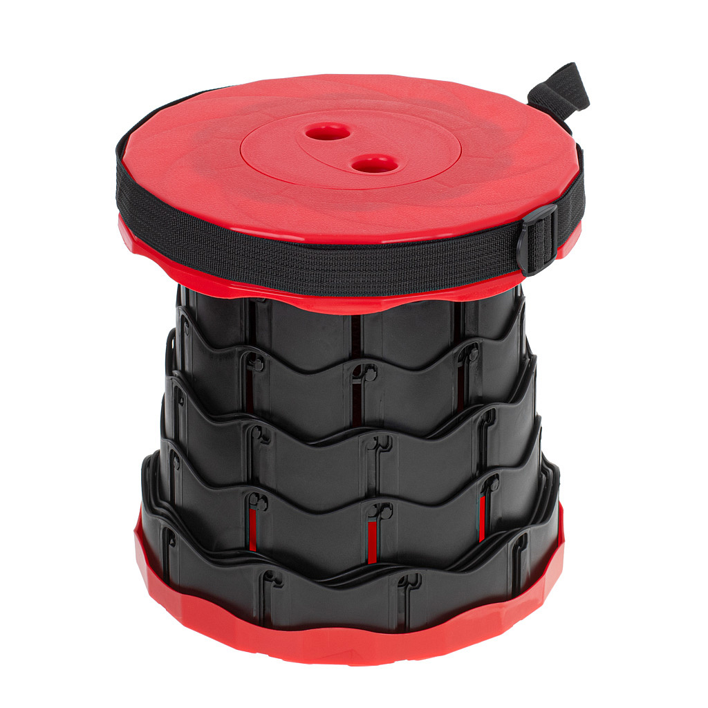 Rozkładany stołek sprawdzi się w każdym dowolnym miejscu, gdzie potrzebujesz dodatkowego miejsca do wypoczynku. Długie łowienie ryb, powolna kolejka, letnia noc pod namiotem – własne miejsce do siedzenia zawsze będzie pod ręką!