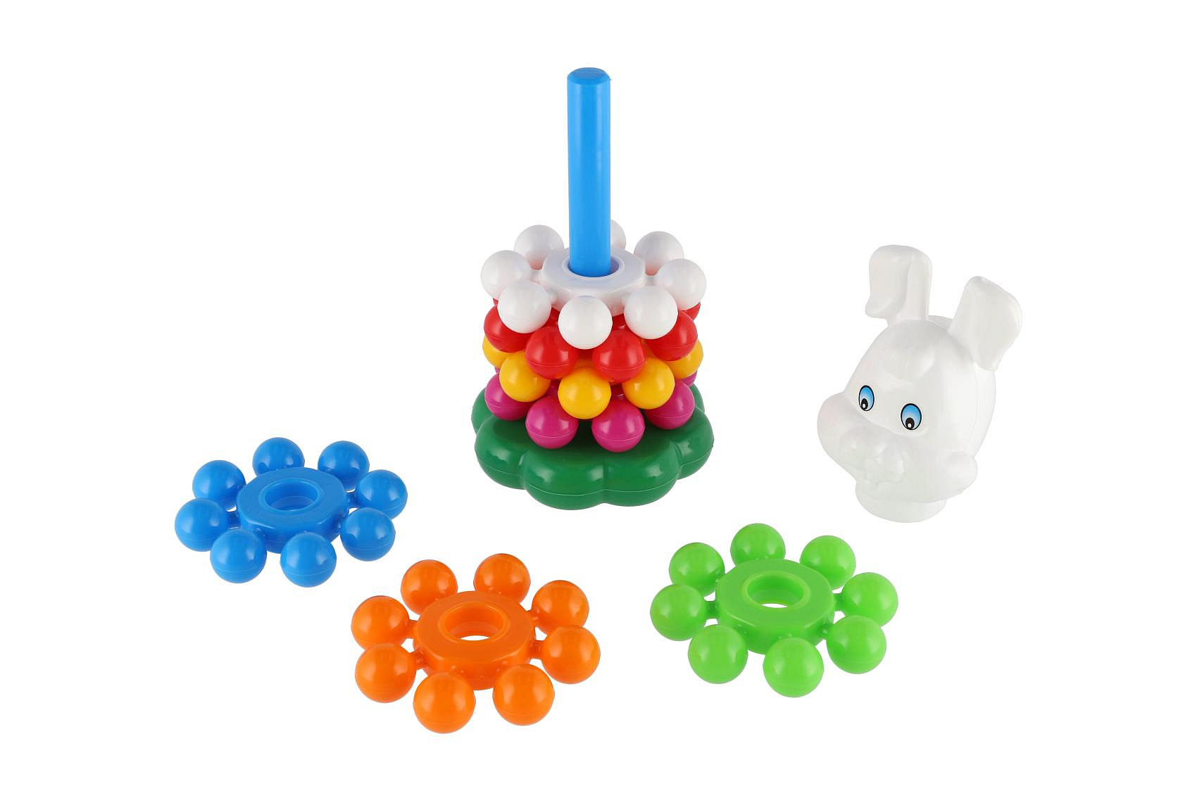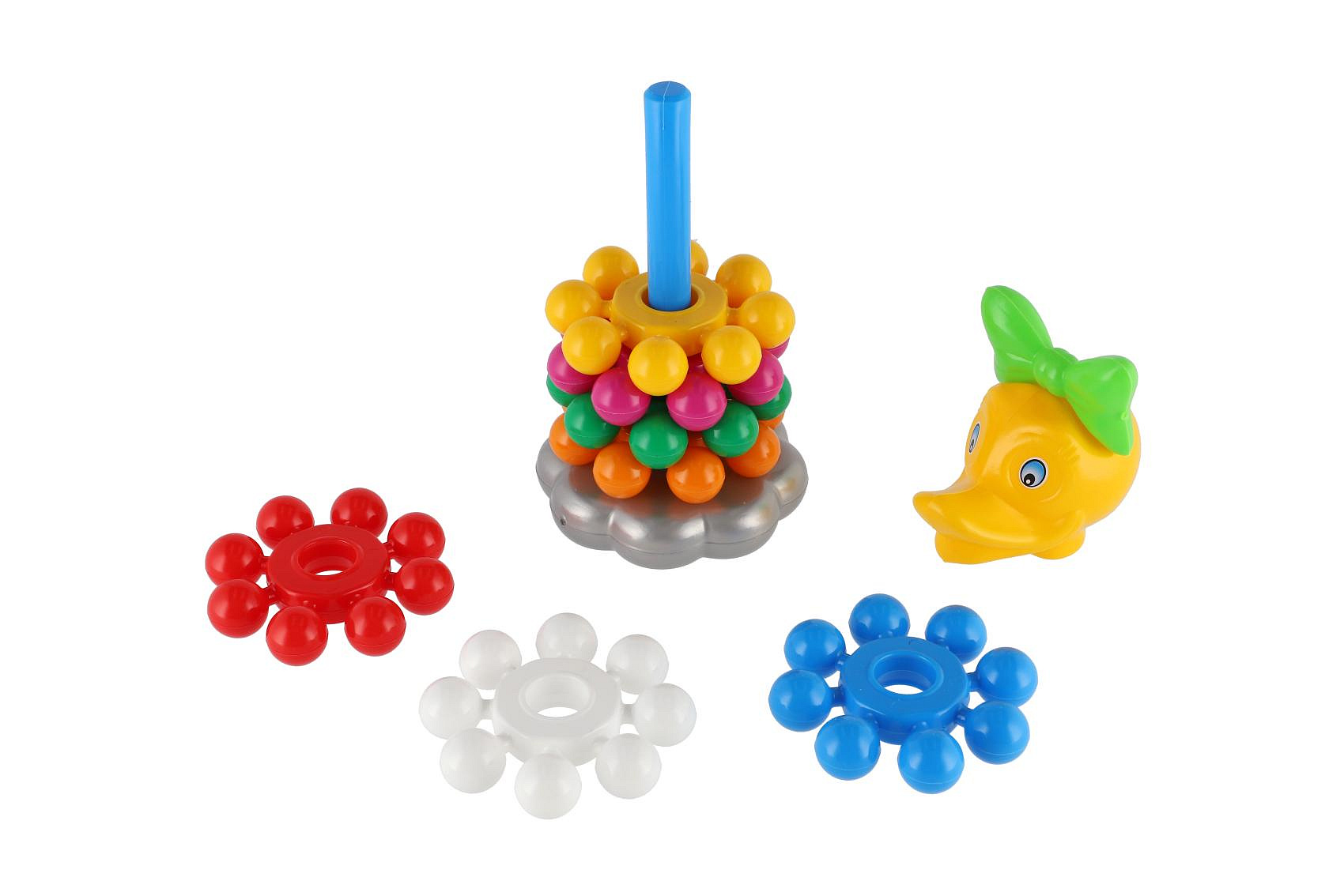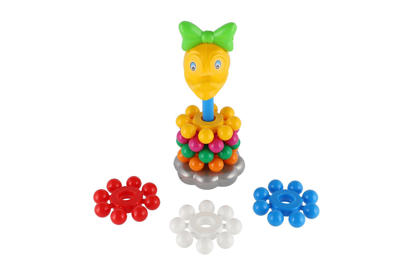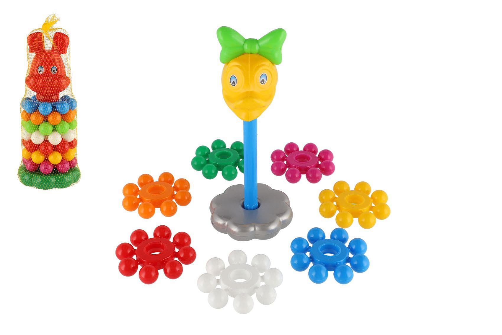 Popis Skládanka pyramida s kroužky plast 26cm 3 druhy v síťce 12m+