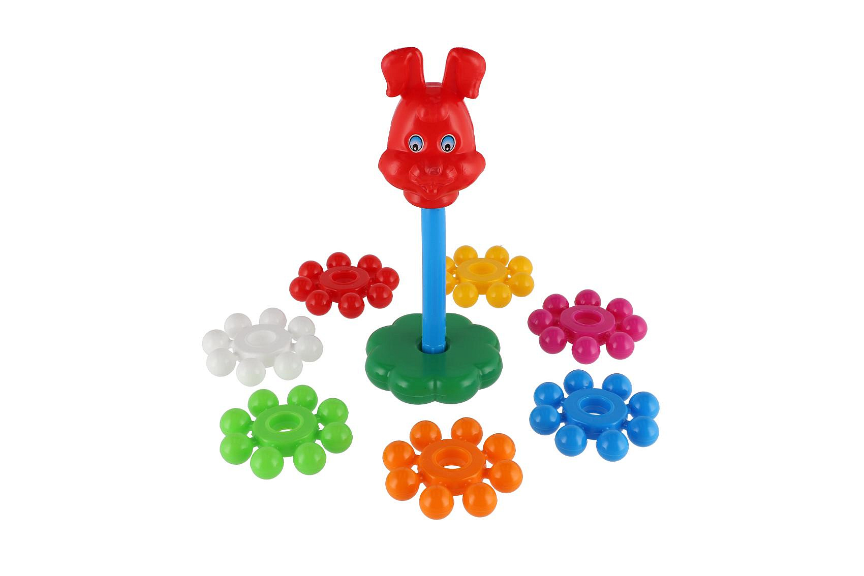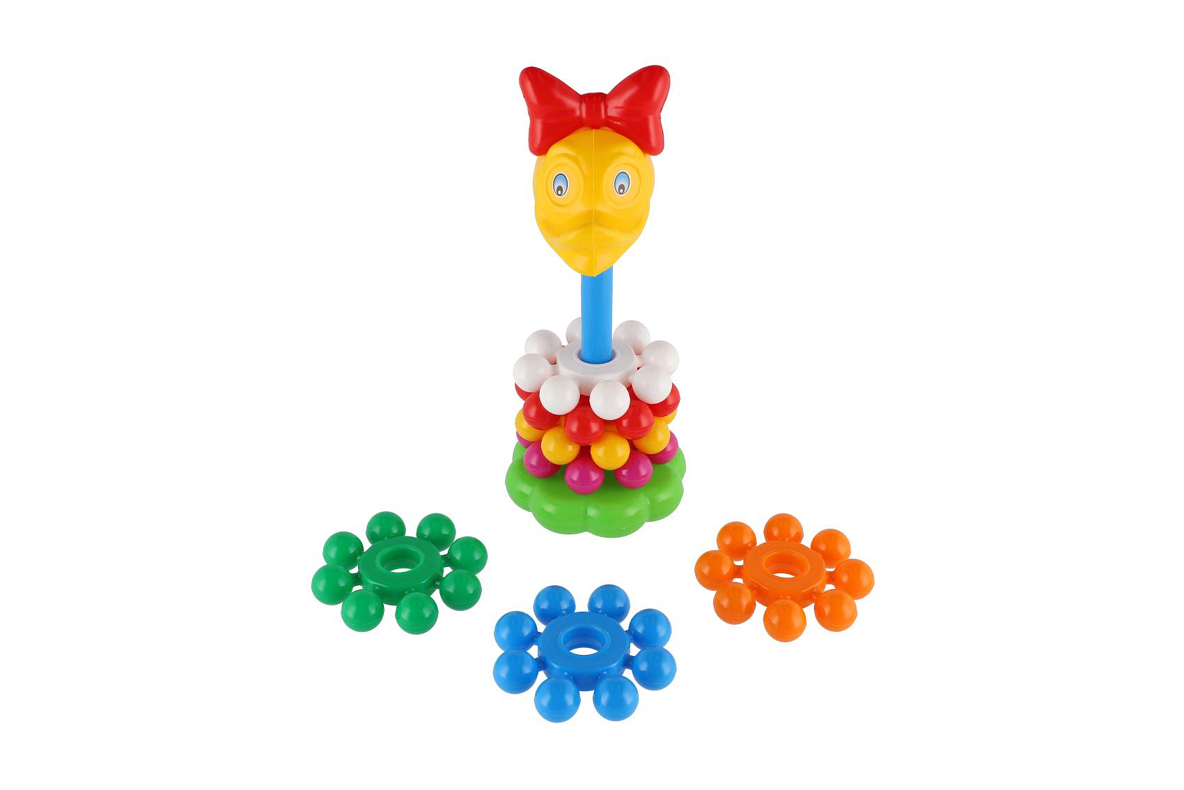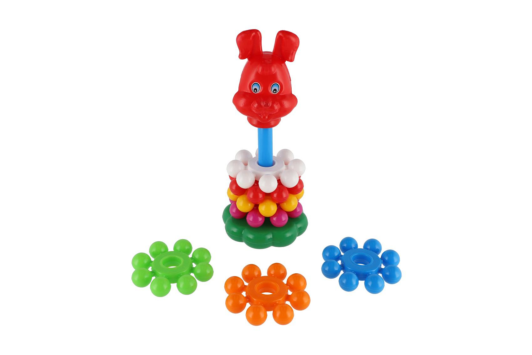 Popis Skládanka pyramida s kroužky plast 26cm 3 druhy v síťce 12m+