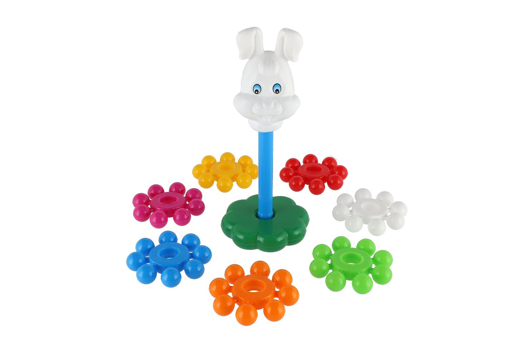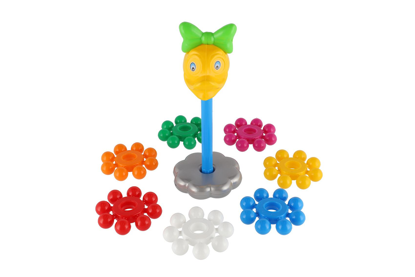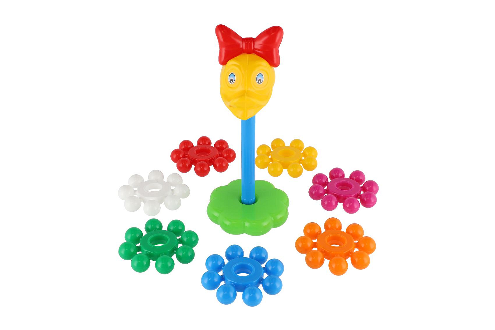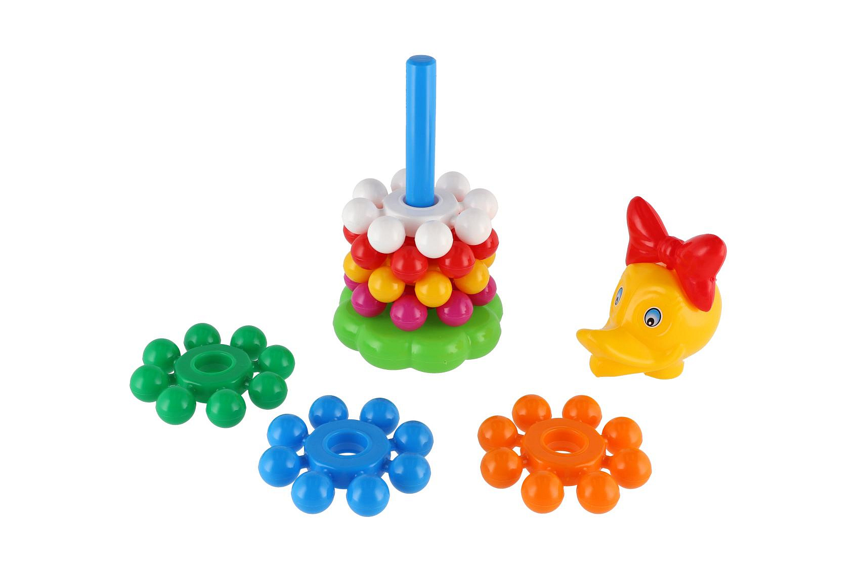 Popis Skládanka pyramida s kroužky plast 26cm 3 druhy v síťce 12m+