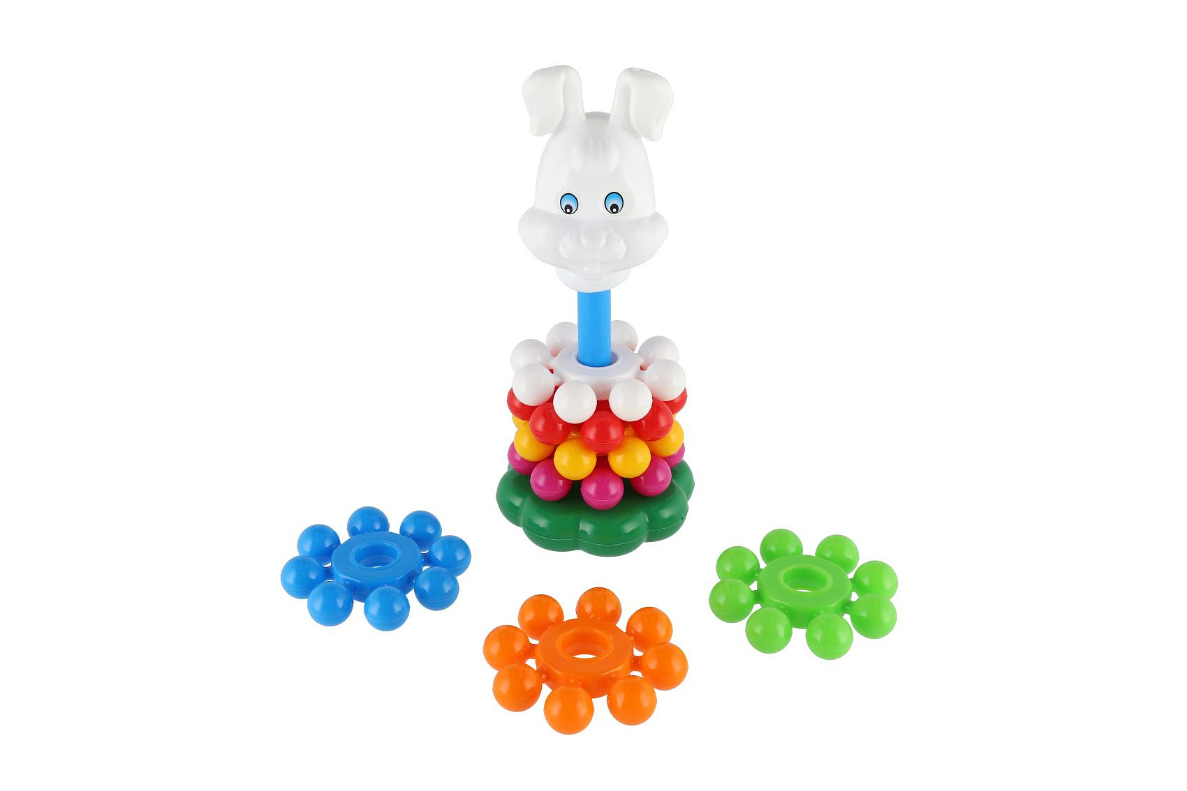 Skládanka s kroužky, ze které lze postavit pyramidu, si oblíbí každé dítě. Pyramida s barevnými kroužky pomáhá v rozvoji jemné motoriky a poznávání barviček. Velikost 26 cm. Vhodné od 12 měsíců.