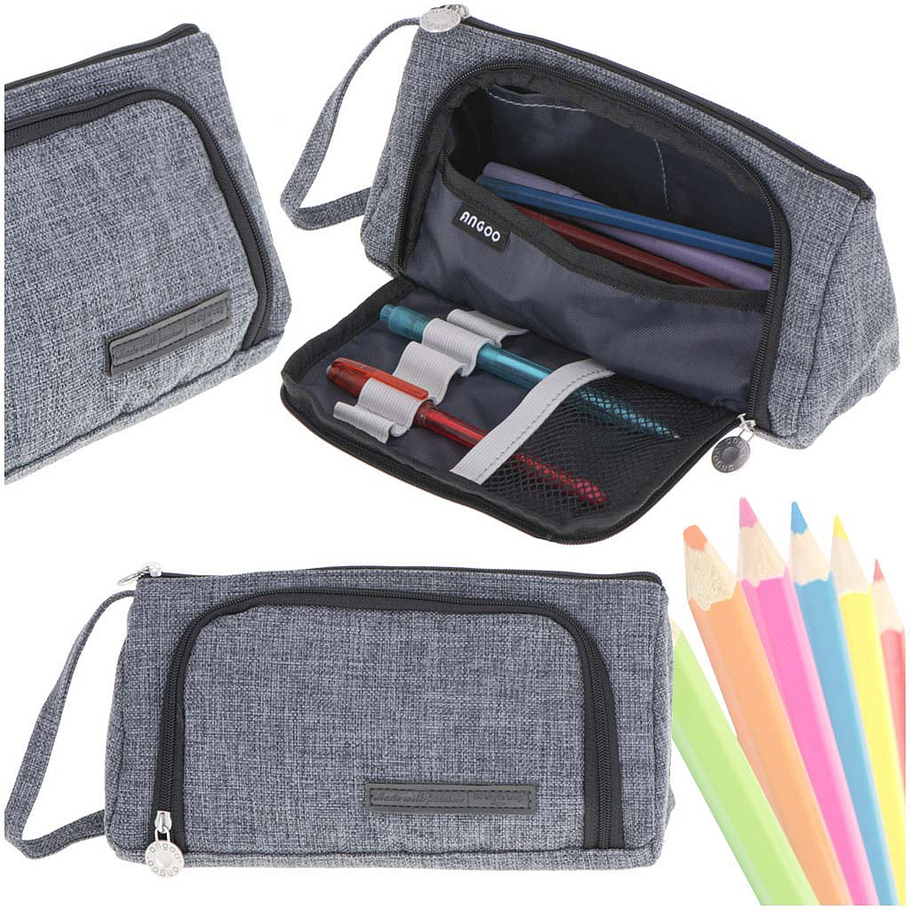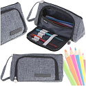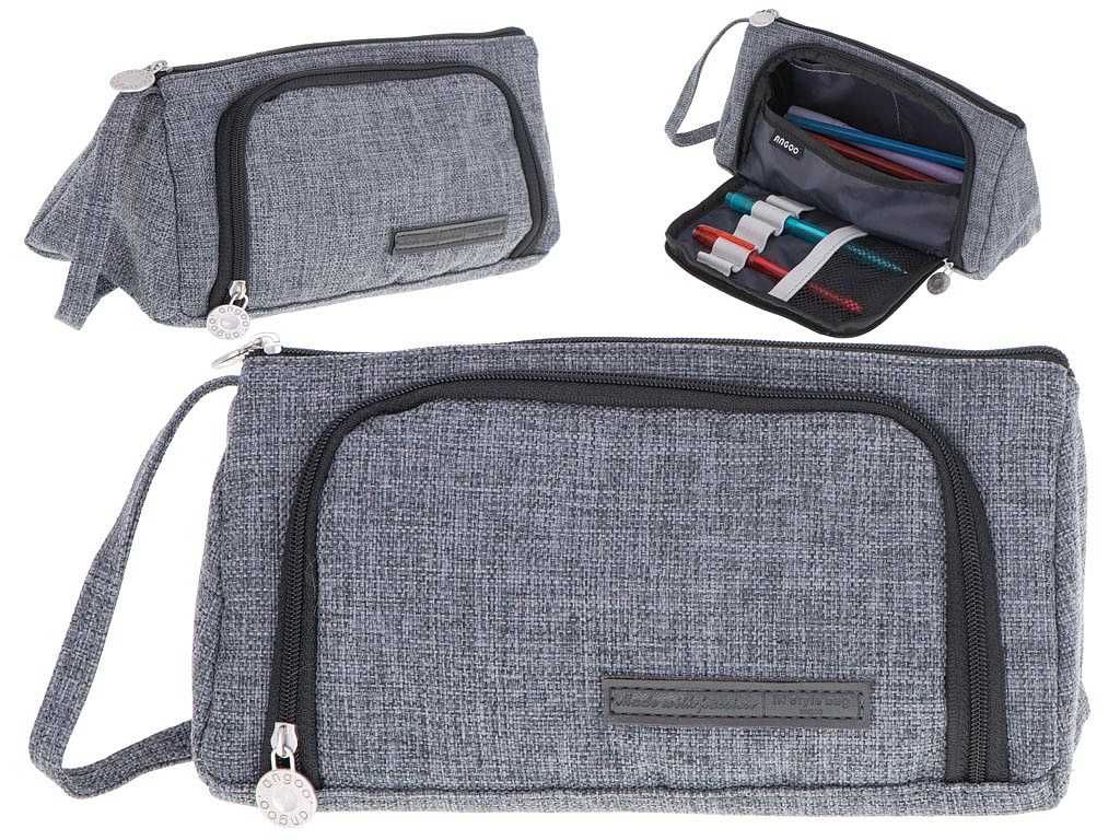PIÓRNIK SZKOLNY PODWÓJNY SASZETKA KOSMETYCZKA SZARY