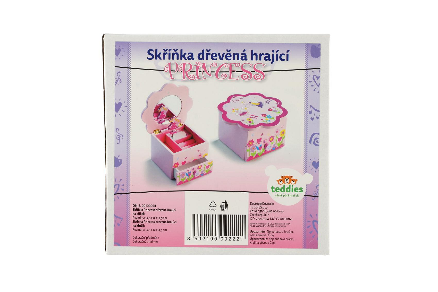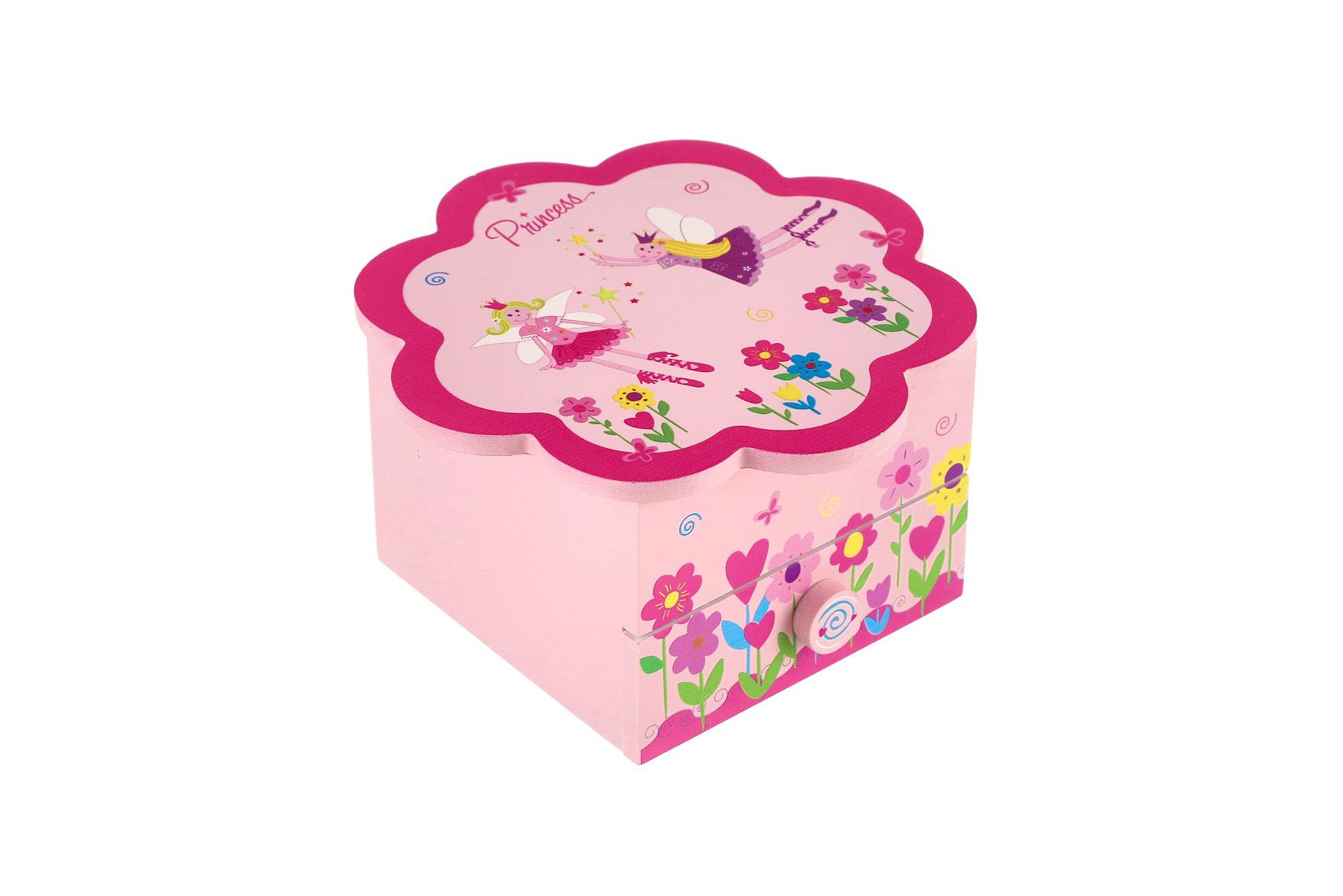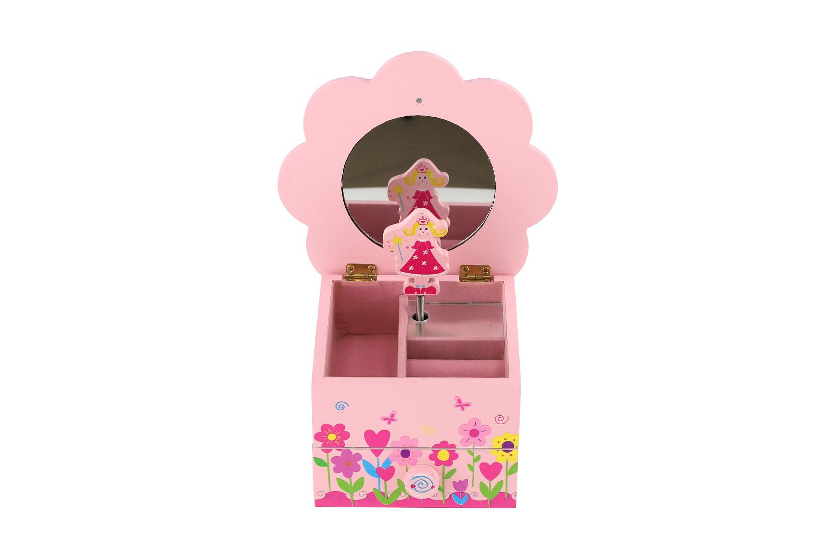 Skříňka šperkovnice Princess dřevo hrající květina zásuvka 14,5x8x14,5cm