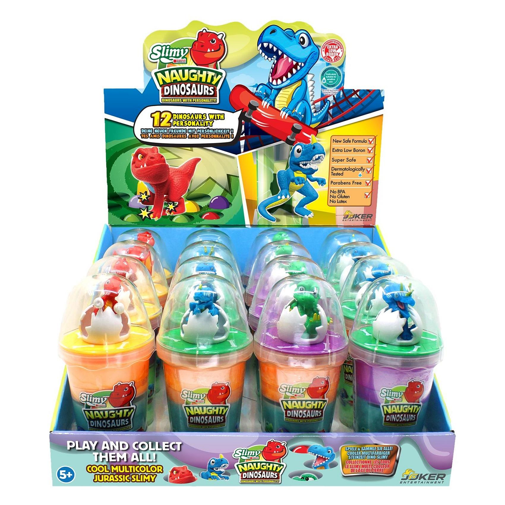 Sliz - hmota Slimy 155g s dinosaurem 14x7cm 4 barvy v kelímku 16ks v boxu