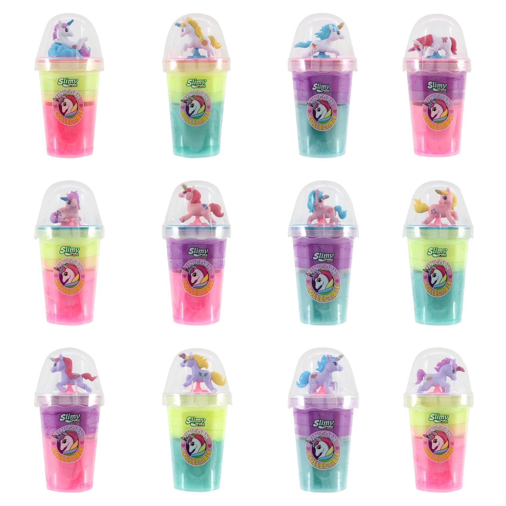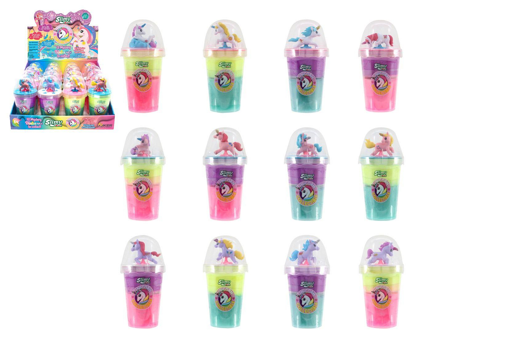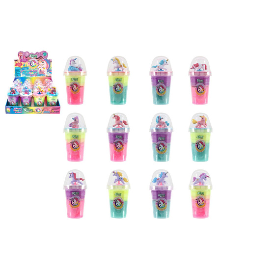 Sliz - hmota Slimy 155g s jednorožcem 14x7cm 4 barvy v kelímku 16ks v boxu