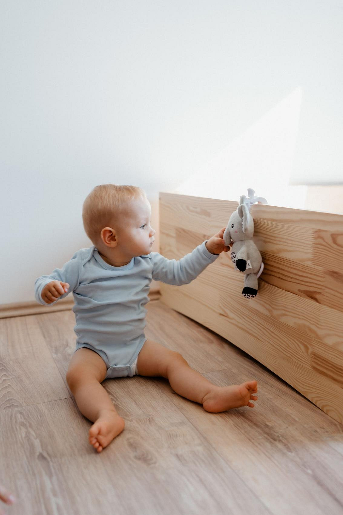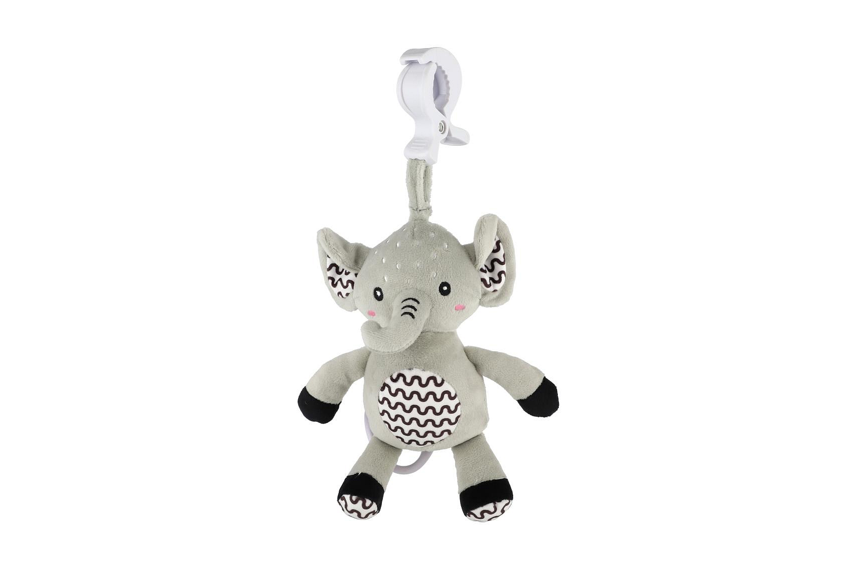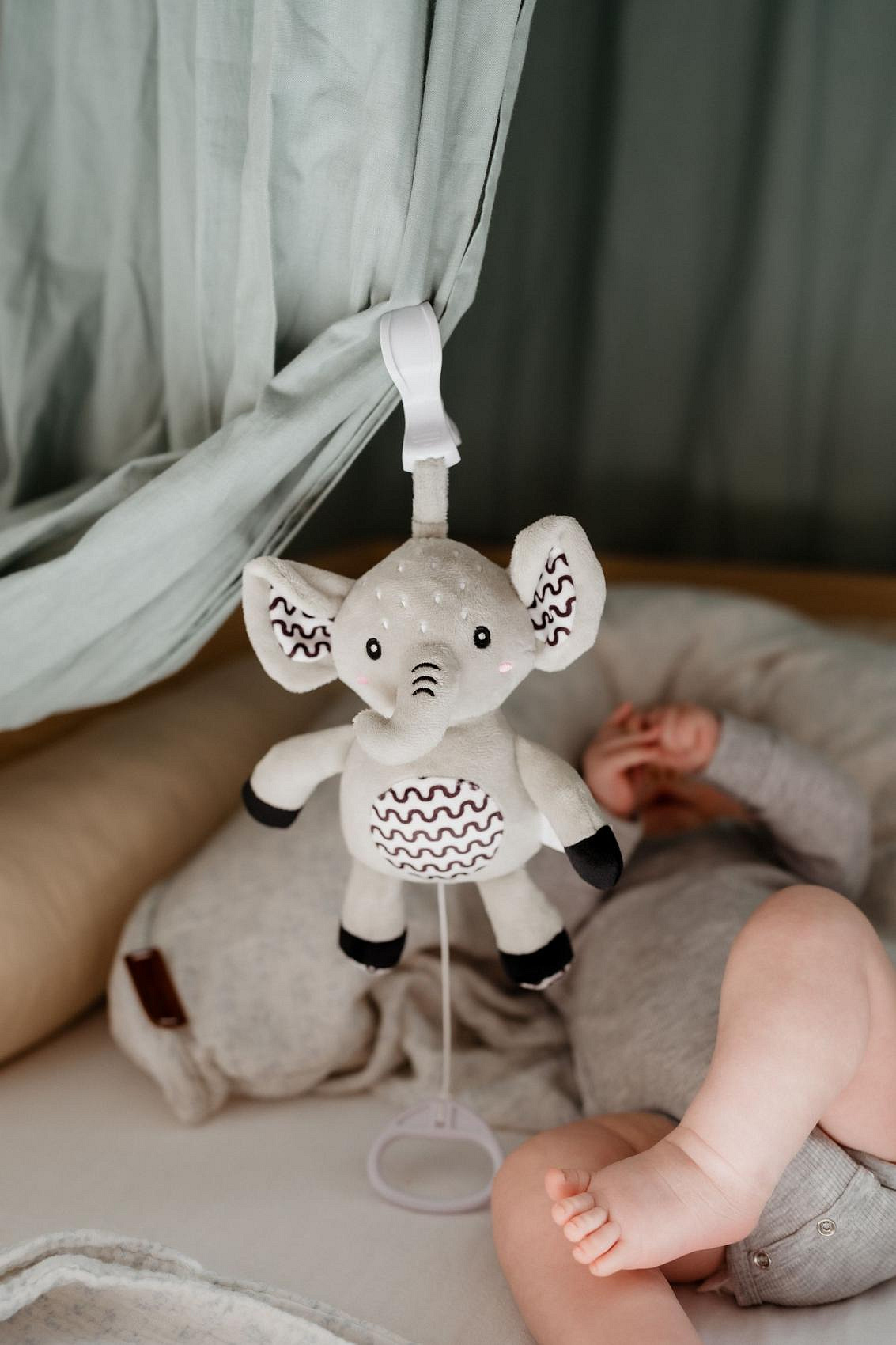 Slon babyted natahovací hrací strojek plyš 30cm závěs na postýlku/kočárek na kartě v sáčku 0m+