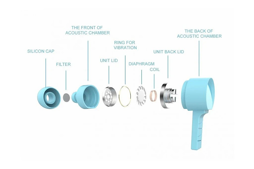 - Špuntová sluchátka do uší s 1,2 m dlouhým ohebným silikonovým kabelem.
