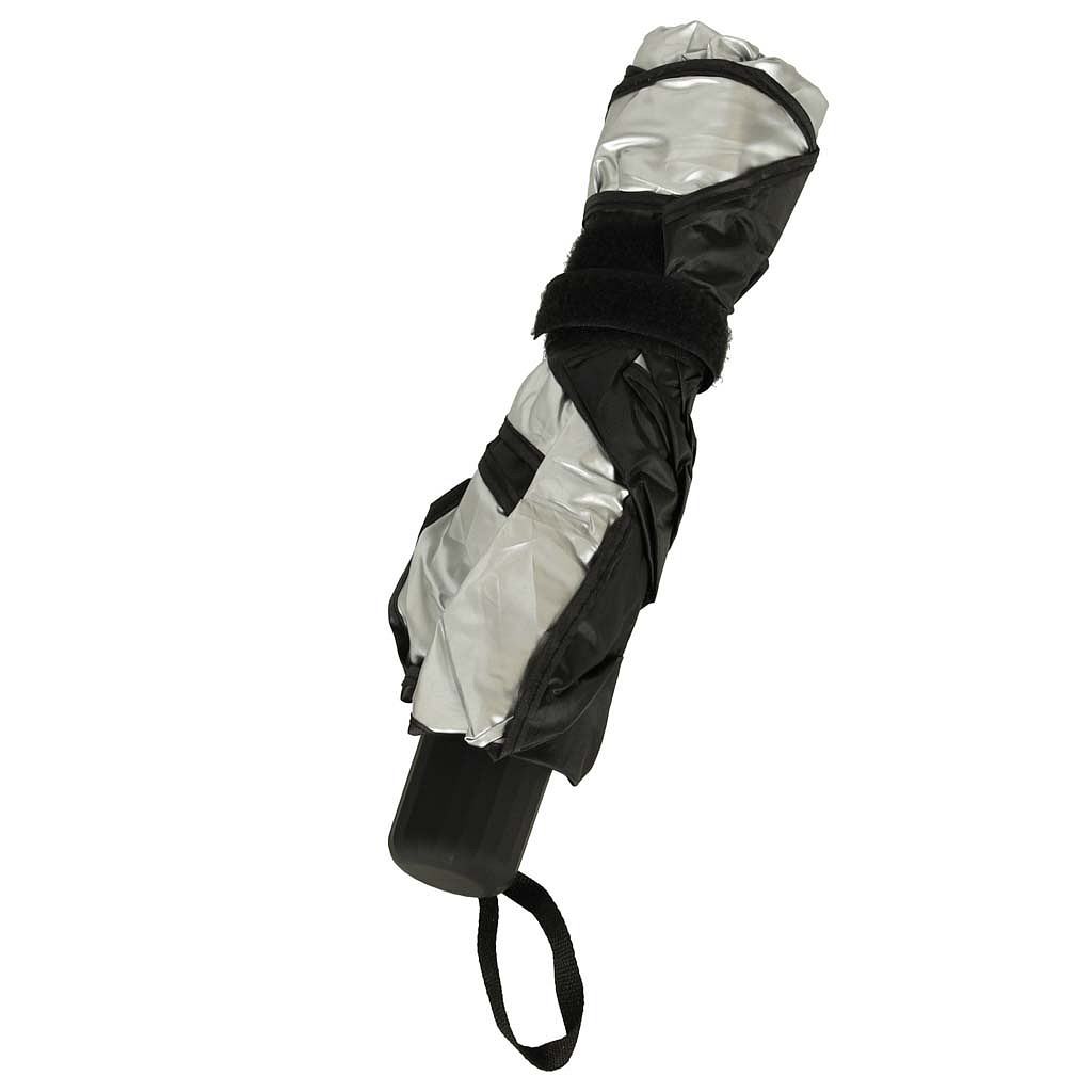 Wyjątkowo prosta i łatwa w obsłudze konstrukcja pozwoli błyskawicznie zabezpieczyć samochód przed nagrzewaniem! Wystarczy, że rozłożysz osłonę tak jak parasol i ustawisz ją w środku samochodu, tak, aby przywierała do szyby.