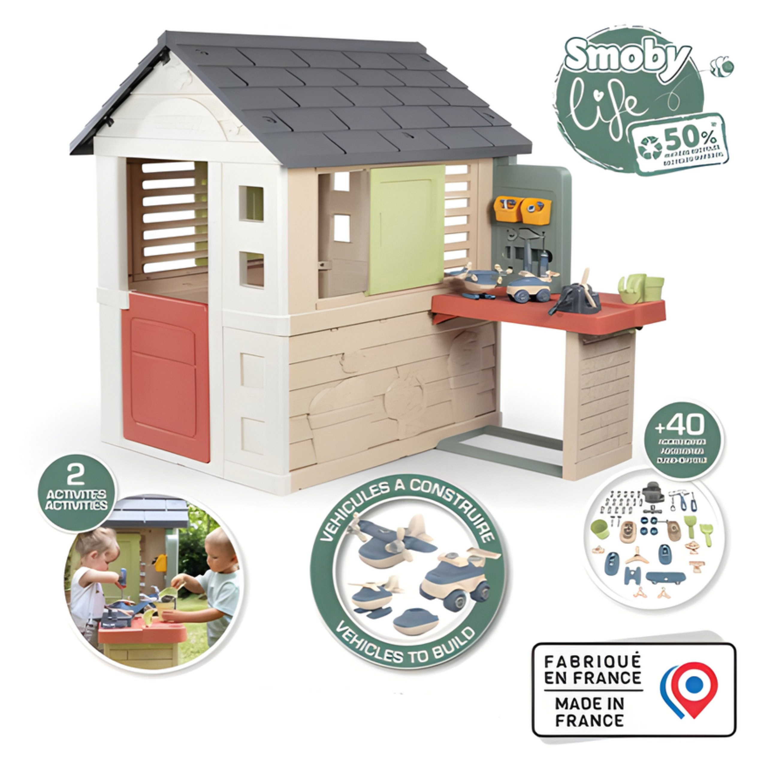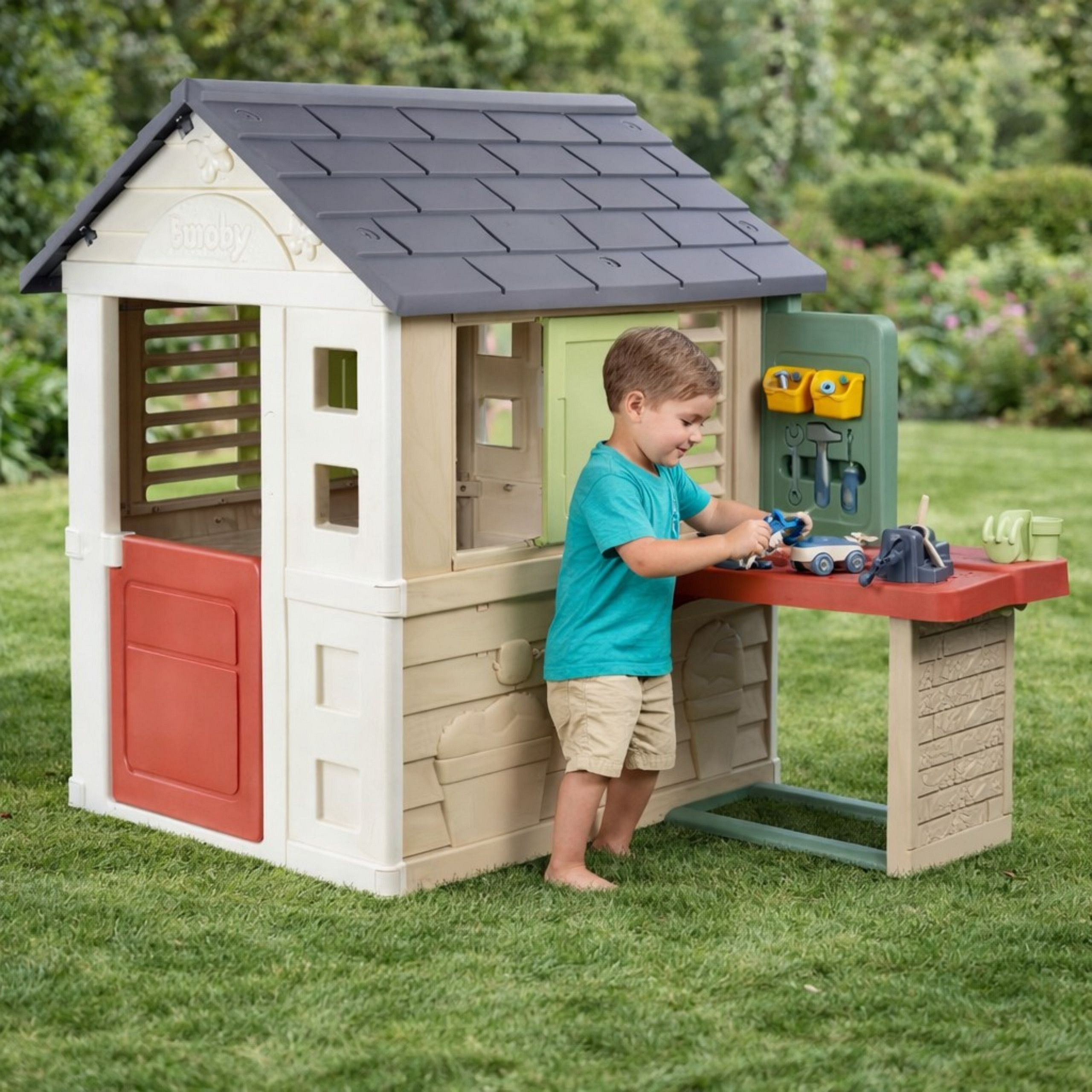 Przenieś codzienną zabawę na zupełnie nowy poziom z Smoby Life Nature z Warsztatem– urokliwym i funkcjonalnym domkiem dla dzieci, który łączy kreatywną zabawę z nauką przez odkrywanie świata! Dzięki przestronnej konstrukcji z przyłączoną pracownią i 39 elementami warsztatowymi, maluchy mogą rozwijać zdolności manualne i bawić się jak prawdziwi majsterkowicze. Dwa okna z ruchomymi lamelami, pół otwieralne drzwi i praktyczna strefa pracy zachęcają do zabawy na świeżym powietrzu, zarówno w ogrodzie, jak i na tarasie. Solidny, UV-odporny plastik zapewnia trwałość i odporność na warunki pogodowe przez długie lata użytkowania. To idealny wybór, by wspierać wyobraźnię, koordynację ruchową i współpracę z rówieśnikami.