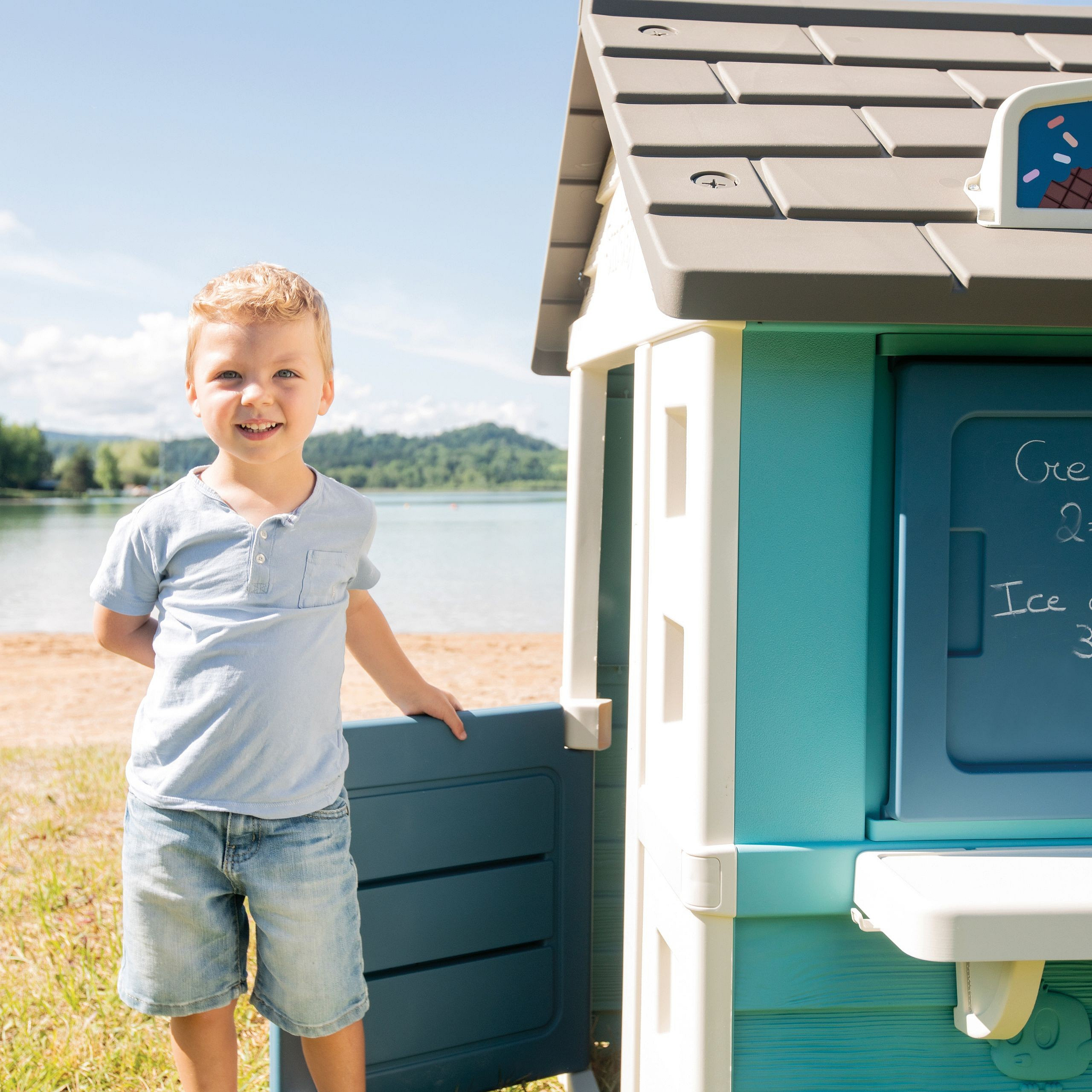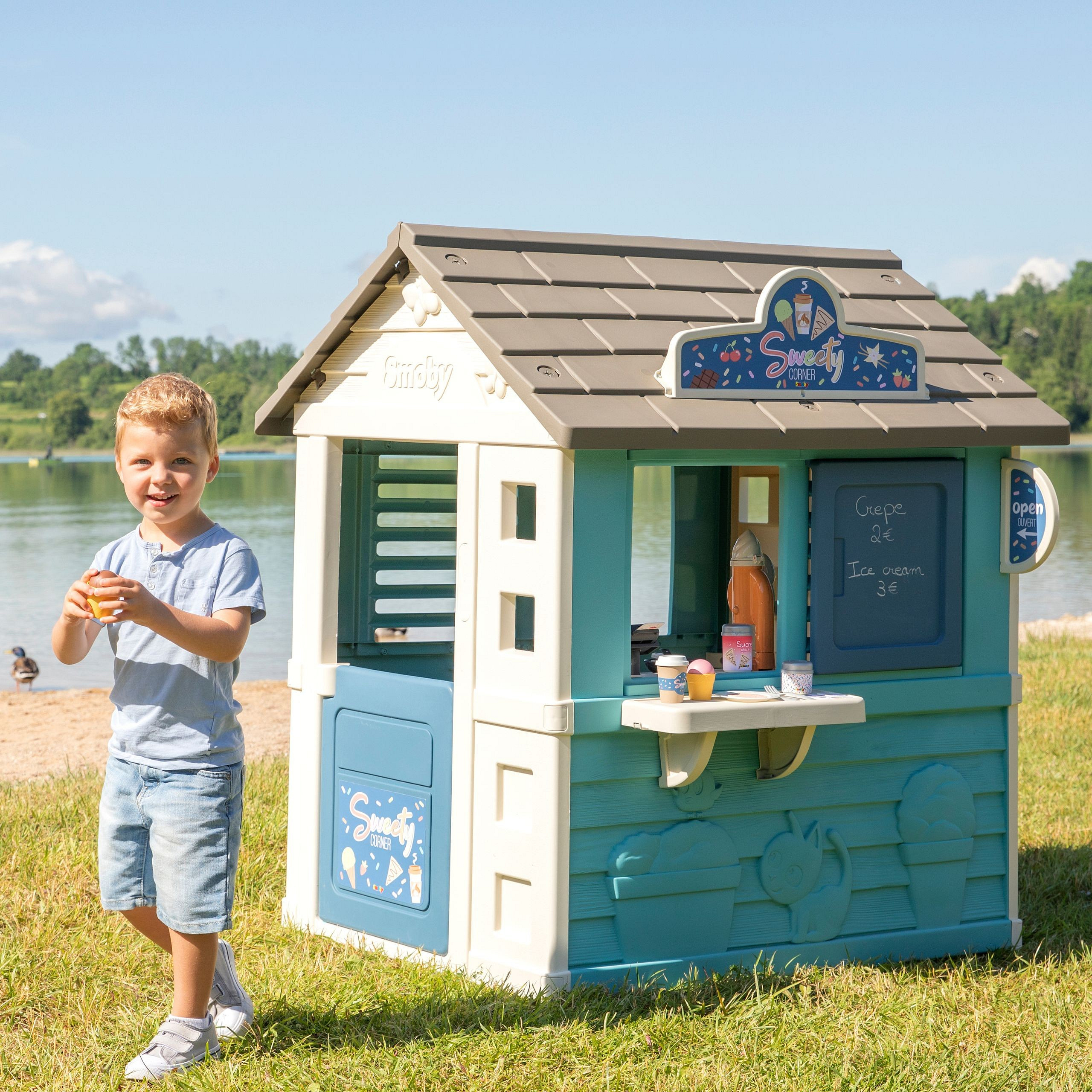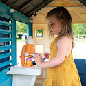 Solidny domek doskonale pasuje do ogrodu, daje możliwość dzieciom wyobrażenia sobie wielu historii. Dzięki dużej wewnętrznej przestrzeni, dzieci mogą zaprosić przyjaciół do wspólnej zabawy. Domek w ciekawej, wiosennej kolorystyce.