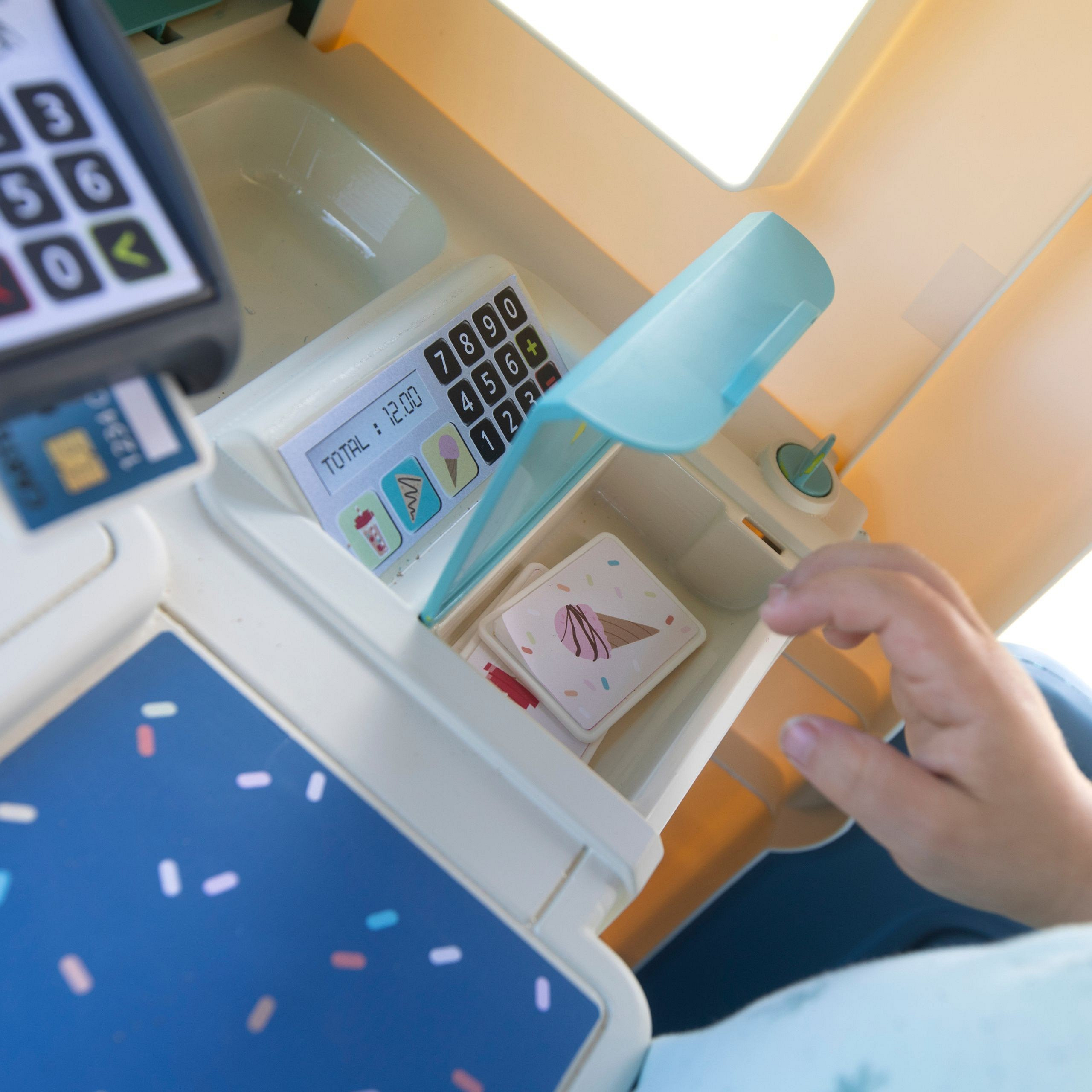- - w zestawie znajdziemy 18 akcesoriów - naleśniki, lody, posypki, sztućce, karty kredytowe, bilony,