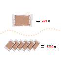 Glina podzielona jest na sześć porcji, dzięki czemu po otwarciu jednej z nich, większość gliny dalej pozostanie świeża i zabezpieczona przed wysychaniem.