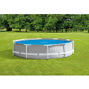 The cover creates an additional layer that reduces heat loss. It protects the water surface from unwanted leaves and other larger debris.