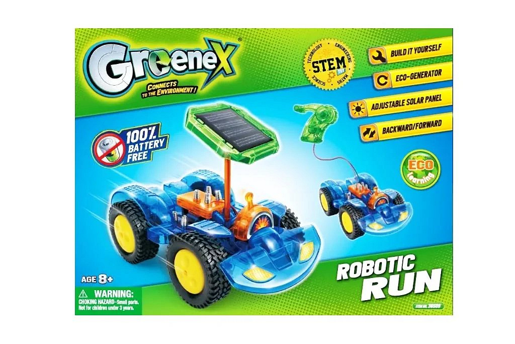 Přeměňte sluneční záření na elektřinu! Sledujte auto poháněné sluncem! Děti získají základní znalosti o získávání energie ze Slunce. Děti budou unešeny až zjistí, že funkce každého solárního vědeckého setu závisí na sluneční energii. Ekologický solární cyklus Greenex™ je jednoduše dosažitelná cesta za poznáním životního prostředí. Každý z produktů tohoto cyklu je jedinečně navržen pro mnohostranné použití. Doporučený věk dítěte od 6let.