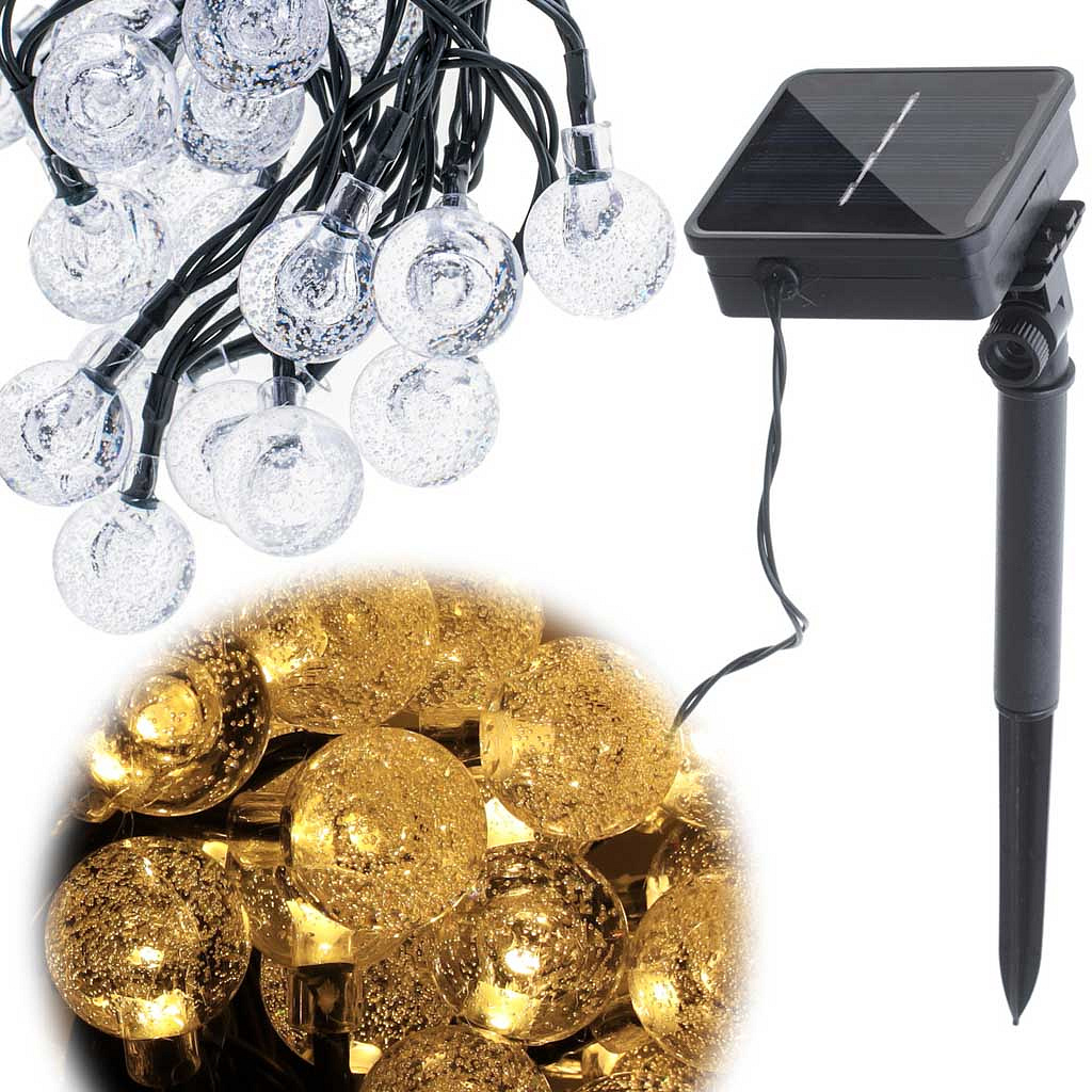 SOLÁRNÍ ZAHRADNÍ LAMPY KOULE 7M 50 LED TEPLÁ BÍLÁ