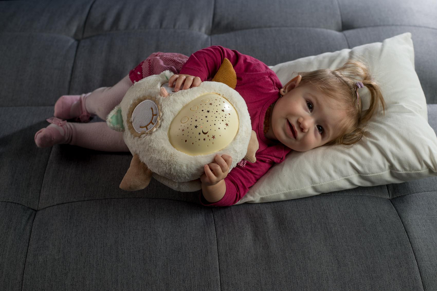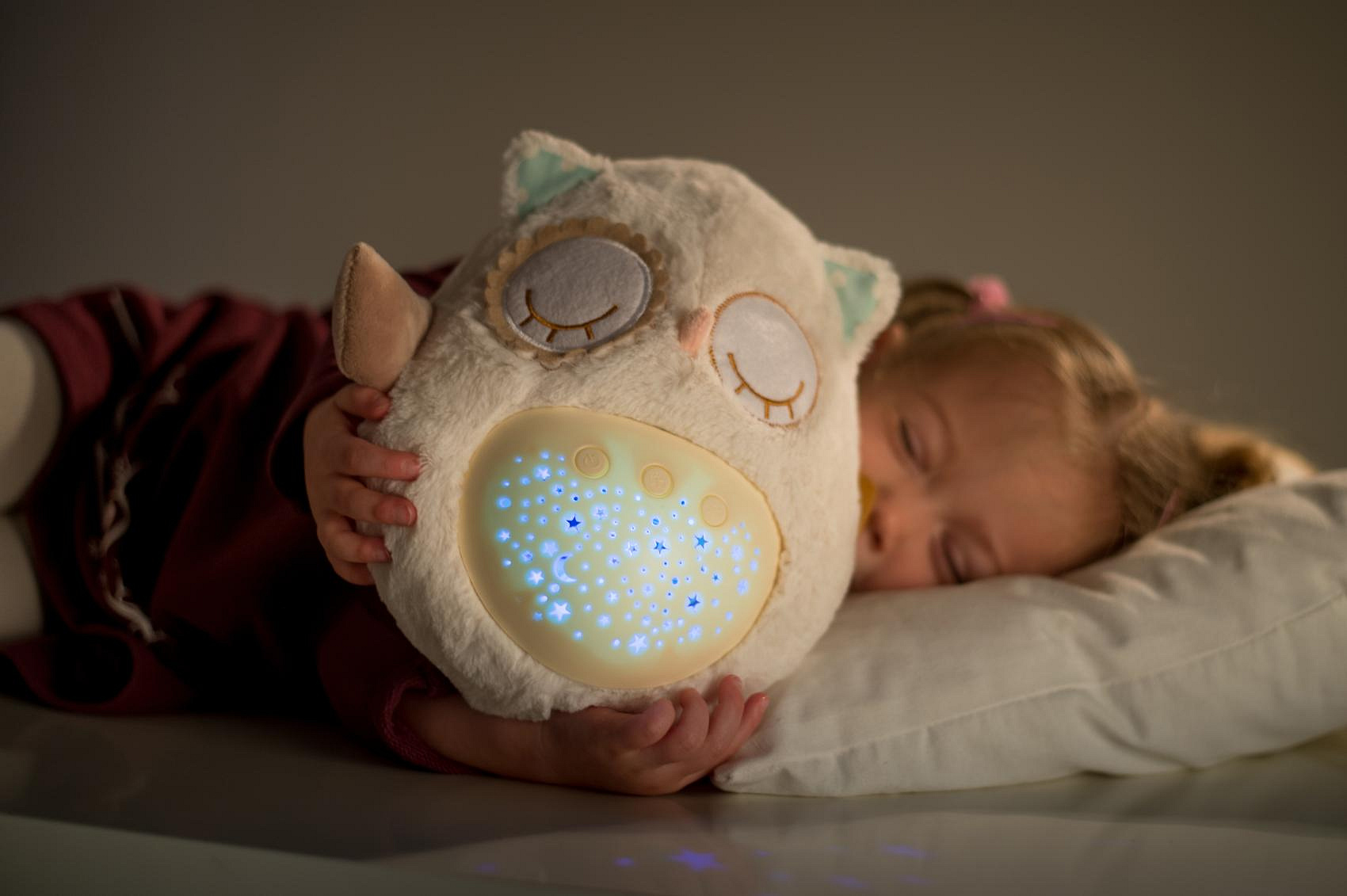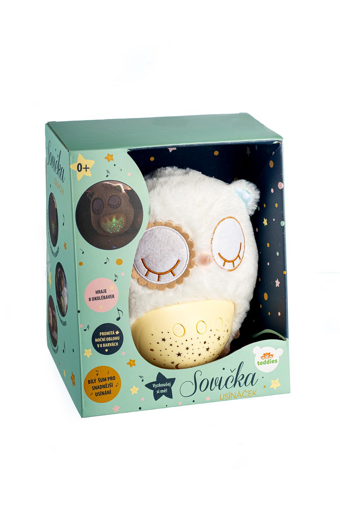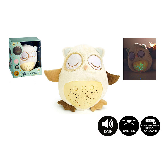 Sovička Usínáček plyš 25cm na baterie se světlem se zvukem v krabici 22x26x17cm 0m+