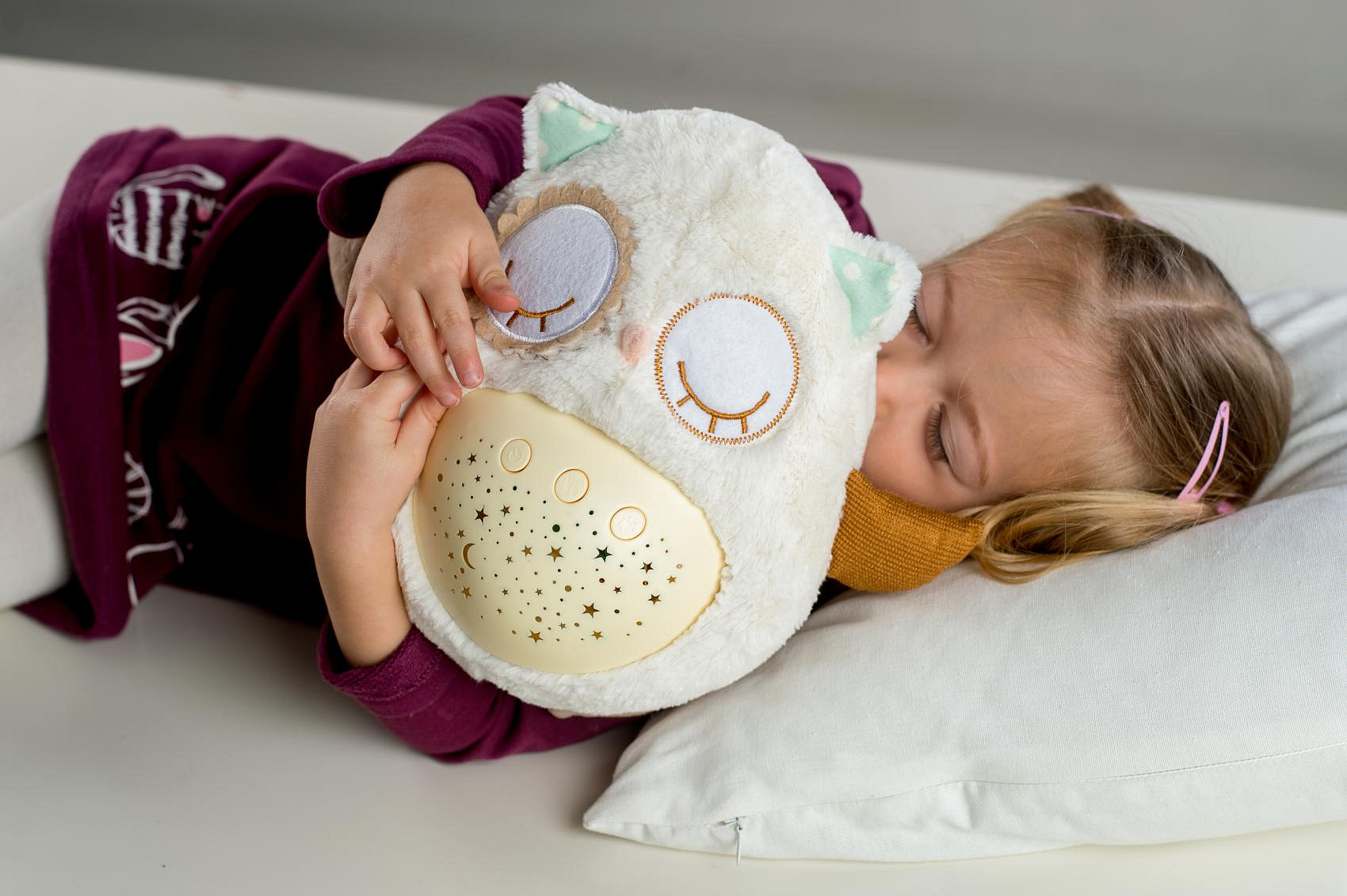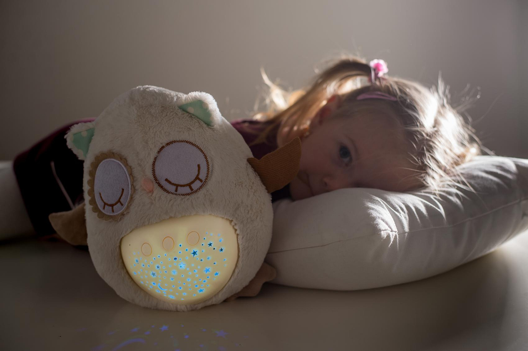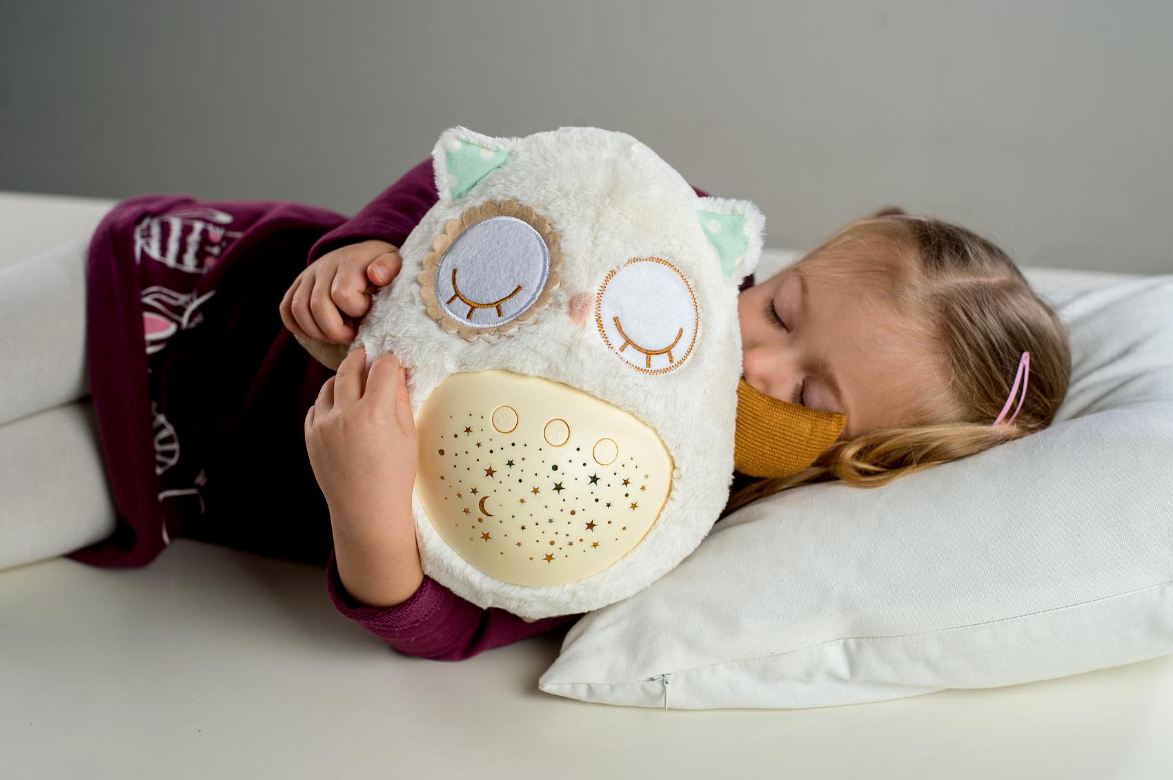 Sovička Usínáček plyš 25cm na baterie se světlem se zvukem v krabici 22x26x17cm 0m+
