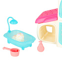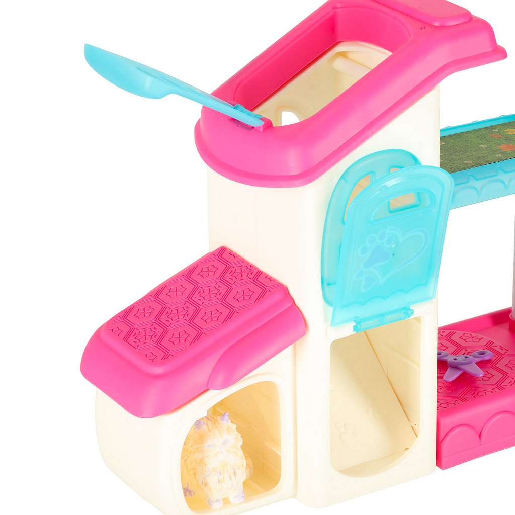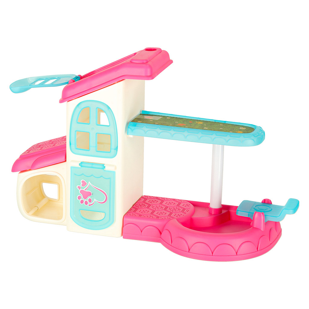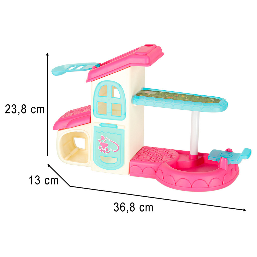 V sadě se nachází domek s otevírací přední a horní klapkou s bazénem a horní terasou. Pro ozdobení terasy je třeba trávu vyjmout přímo z krabice. Domácí mazlíčci mohou využít koupel ve vaničce, stejně jako stříhání a česání srsti. Můžete jim také připravit oblíbené pochoutky – kostku, šunku, rybu a mrkev.