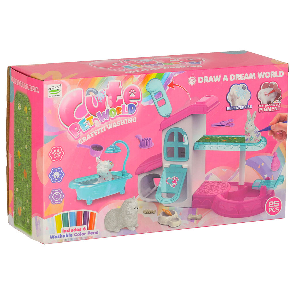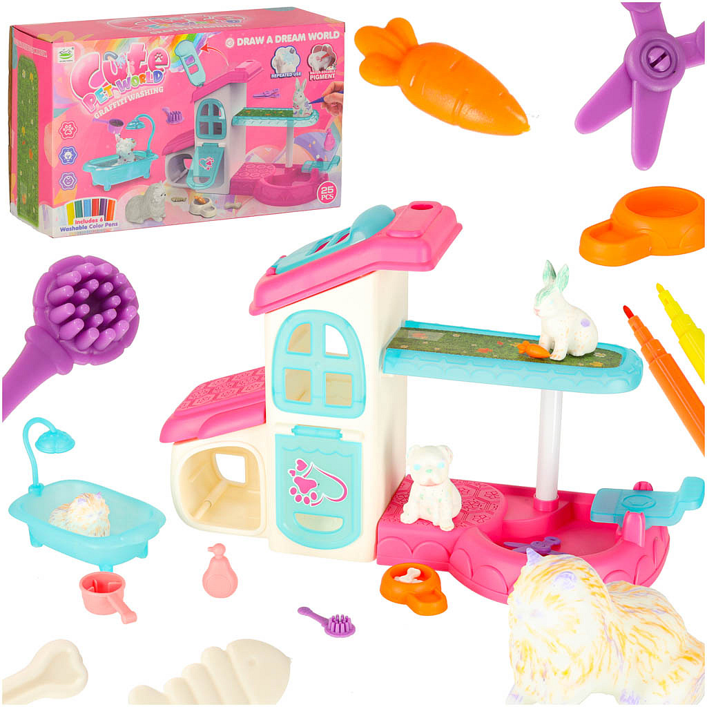 Sada ve stylu hotelu se SPA pro zvířata může zaujmout kreativní děti. Bílé figurky pejska, kočičky a králíčka lze podrobit pečujícím procedurám a změnit jim barvu kožíšku pomocí fixů. Fixy lze smýt vodou, aby bylo možné na zvířátka nanést nové vzory a barvy.
