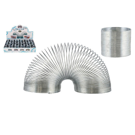 Kovová kouzelná pružina. Pružina je jako živá, lze ji pustit ze schodů a sama po nich přeskáče, nebo si ji přehupovat z dlaně do dlaně. Průměr 5,5 cm. Vhodné pro děti od 3 let.