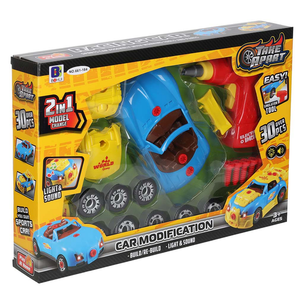 Sportovní auto pro tuning s vrtačkou 2v1 světla a zvuky