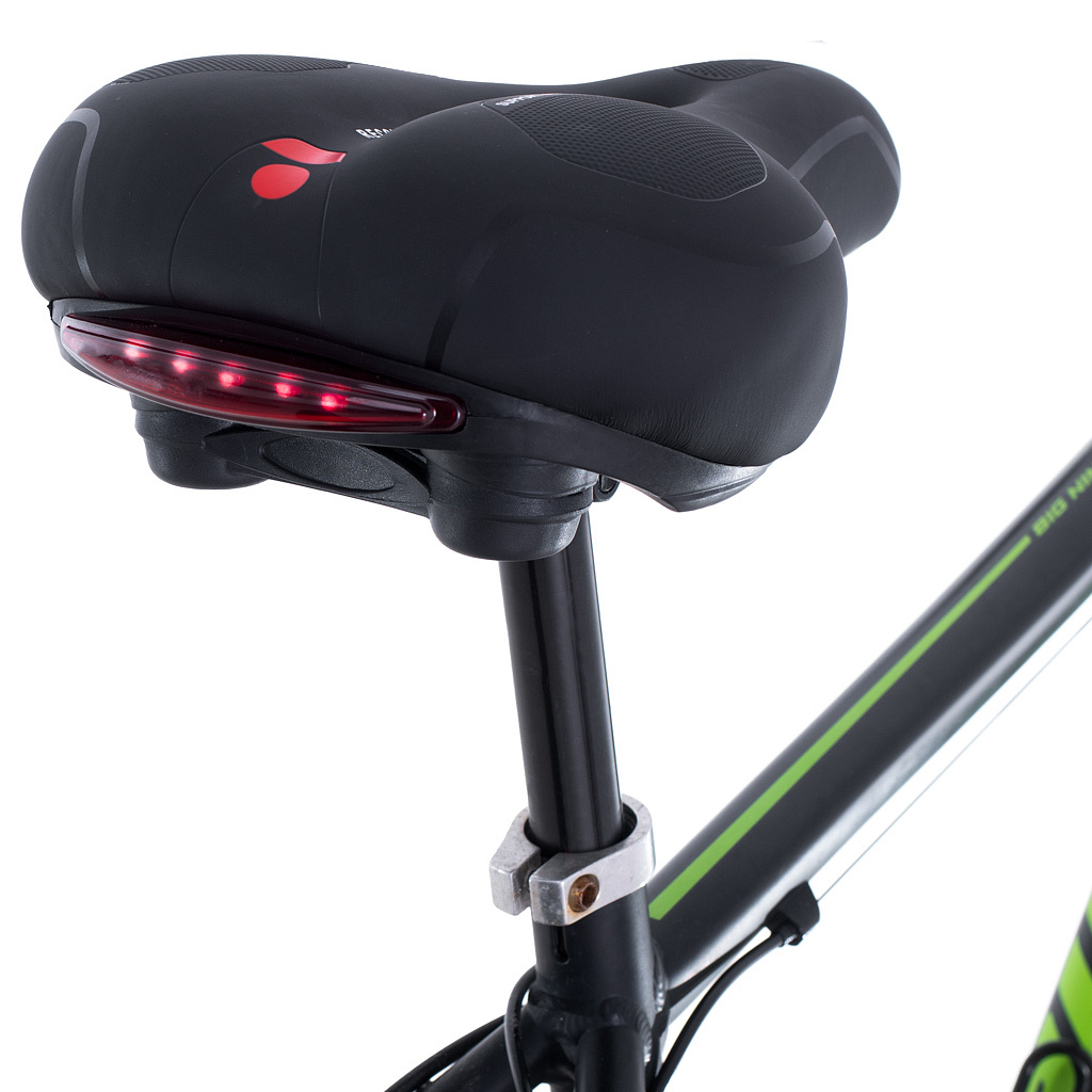 Dodatkowo lampka LED znajdująca się z tyłu siodełka zapewnia dodatkowe bezpieczeństwo w trakcje jazdy rowerem, szczególnie po zmroku. Zintegrowana lampka w siodełku wyposażona jest w wygodny przycisk oraz 3 tryby świecenia - stały, migający i dynamiczny przechodzący - zapewniając lepszą widoczność i bezpieczeństwo podczas jazdy.