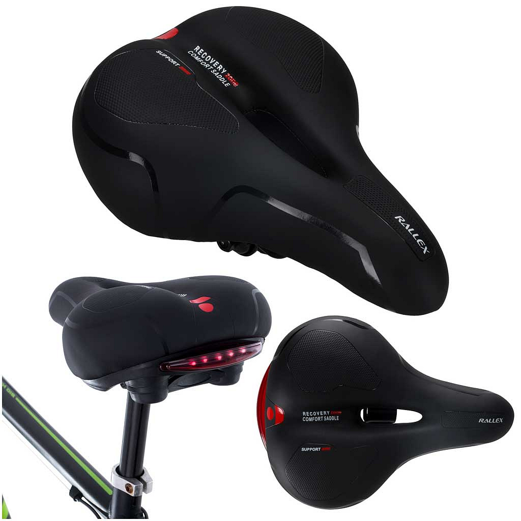 SIODEŁKO ROWEROWE RALLEX SPORTOWE WYGODNE - SIODEŁKO Z PIANKĄ ELASTYCZNĄ I LAMPKĄ LED