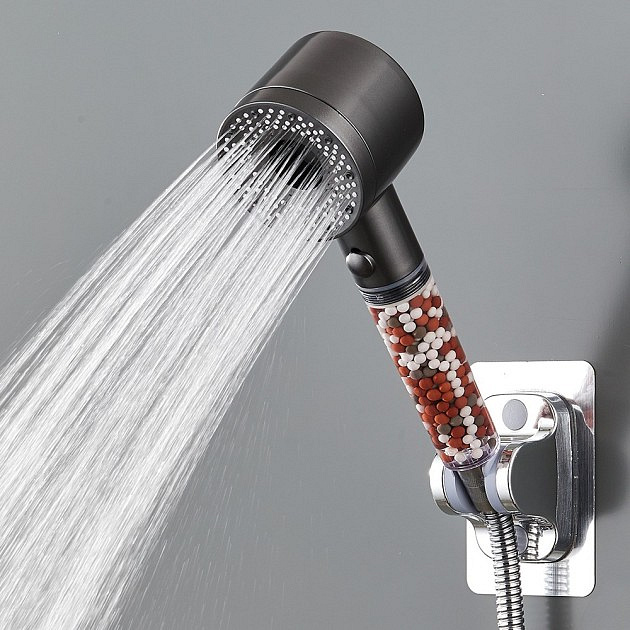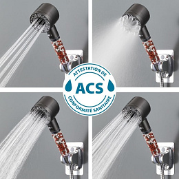 Key Features: Five Adjustable Spray Settings: Choose from various water sprays, ranging from an invigorating massage to a gentle mist, providing the ultimate spa experience at home. Integrated Water-Saving Button: The convenient stop button allows you to temporarily pause the water flow during lathering or shampooing, potentially saving up to 56% of water compared to traditional showerheads. Enhanced Filtration: The built-in mineral beads provide 76% improved filtration, removing impurities and limescale from the water. This results in softer water, benefiting both your skin and hair. Easy Installation: With its universal connection, this showerhead can be quickly and easily attached to any standard shower hose. Choose the Pure Shower Eco 5-mode showerhead and combine luxury with sustainability in your daily shower routine.