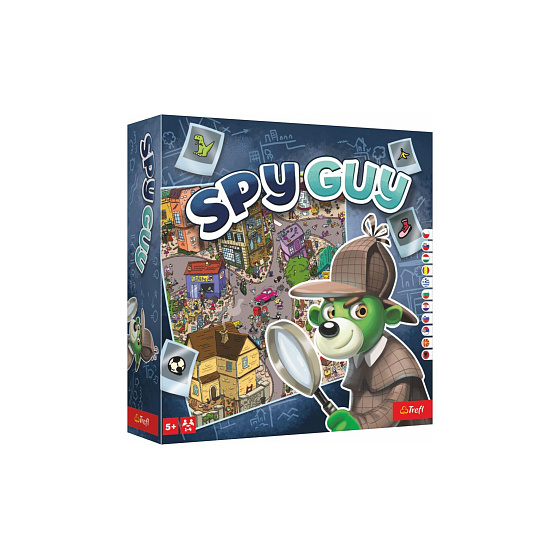 Ve městě došlo k sérii krádeží za bílého dne... Evidentně za nimi stojí vychytralý doktor Moritz, zatím se ho však nepodařilo dopadnout. Místní doufají, že jim pomůže Spy Guy - super detektiv, který v Treflíkově chrání zákon a pořádek. Dokáže Spy Guy chytit doktora Mortize dřív, než uprchne? Spy Guy je kooperativní hra, v níž záleží na bystrých očích a dobré spolupráci. Hledejte stopy na velké mapě města. Čím víc stop najdete, tím rychleji doktora Mortize chytíte. Obsah balení: hrací deska, 2 figurky se stojánky, přesýpací hodiny, 56 karet stop, 10 žetonů k označení stop, návod. Velikost balení: 26 x 26 x 6 cm Vhodné pro děti od 5 let