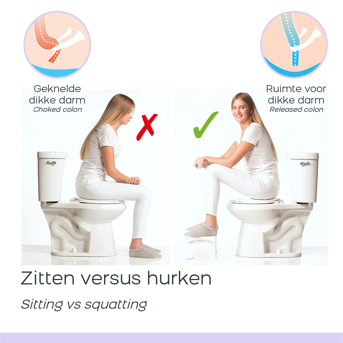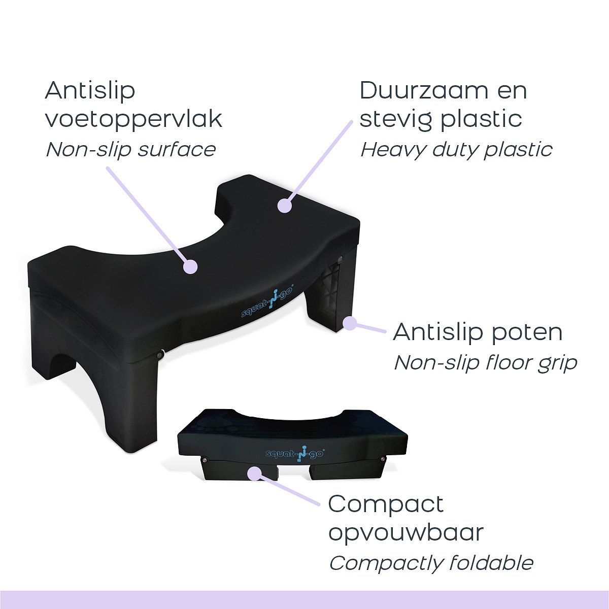 Using the Squat N Go Toilet Stool offers several digestive and intestinal health benefits. Raising the angle of your knees while sitting on the toilet restores the body's natural anatomical position, improving the flow in the intestines. This can help prevent problems such as constipation, bloating and hemorrhoids. Use the toilet stool and experience the difference it can make to your bowel movements and general health. Say goodbye to discomfort and irregularities and enjoy a natural and effortless bowel movement with the Squat N Go.