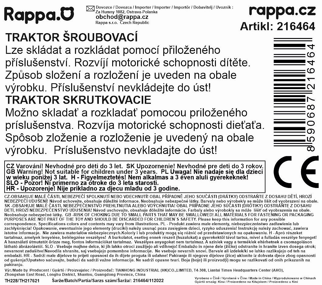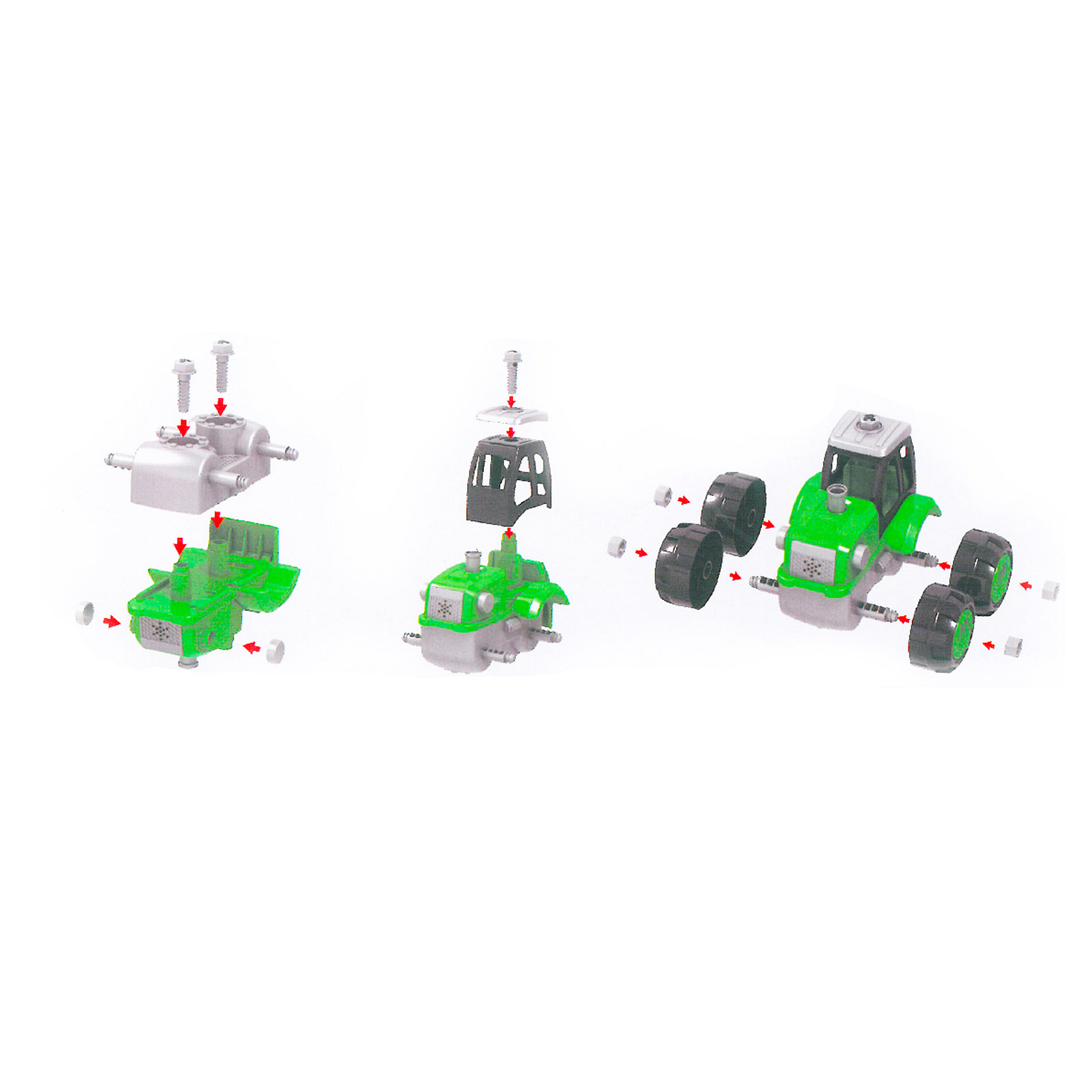 Zelený šroubovací traktor s červenou vlečkou. Pomocí šroubováku, který najdeš v balení, můžeš traktor snadno rozložit a sestavit si ho znovu. Rozvíjí kreativitu. Velikost traktoru s vlečkou je 32 cm.