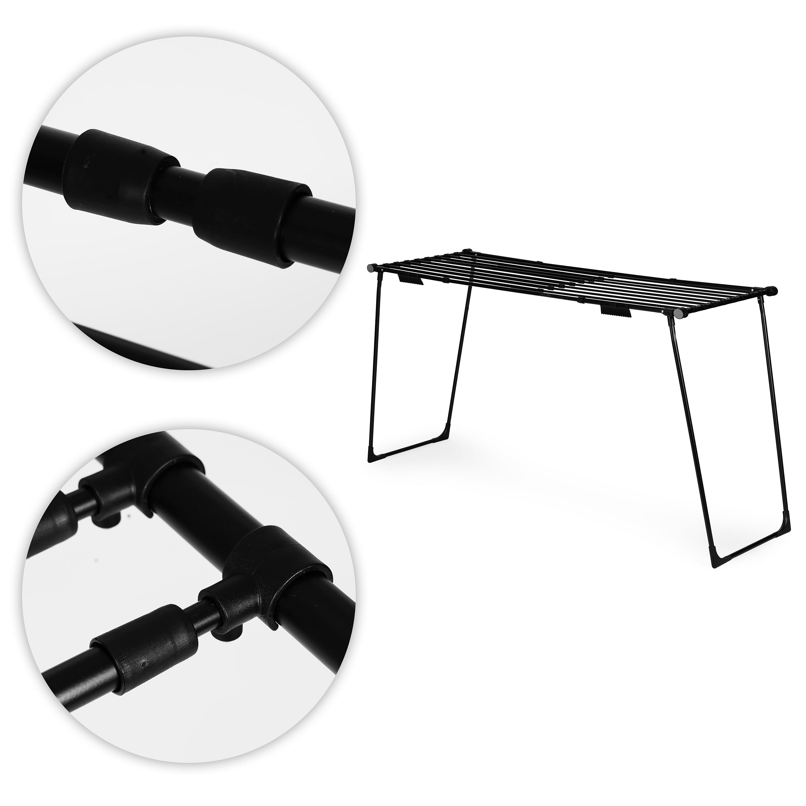 The drying rack has been designed with convenient storage in mind – folding is quick, intuitive, and requires no force. When folded, it takes up a minimal amount of space, so it easily fits in a wardrobe, behind a door, or next to a washing machine.